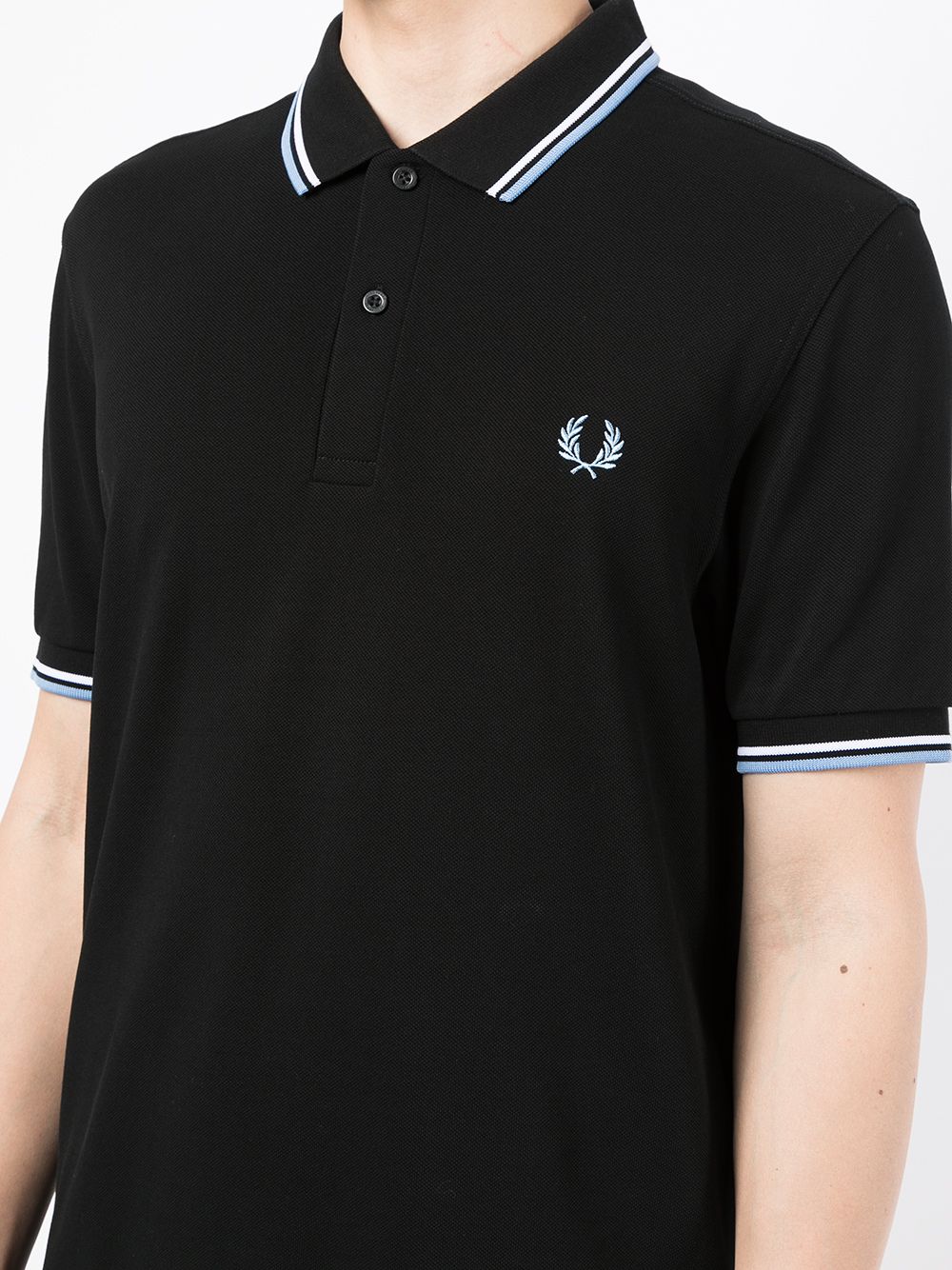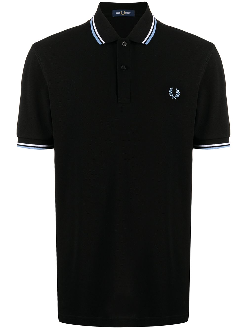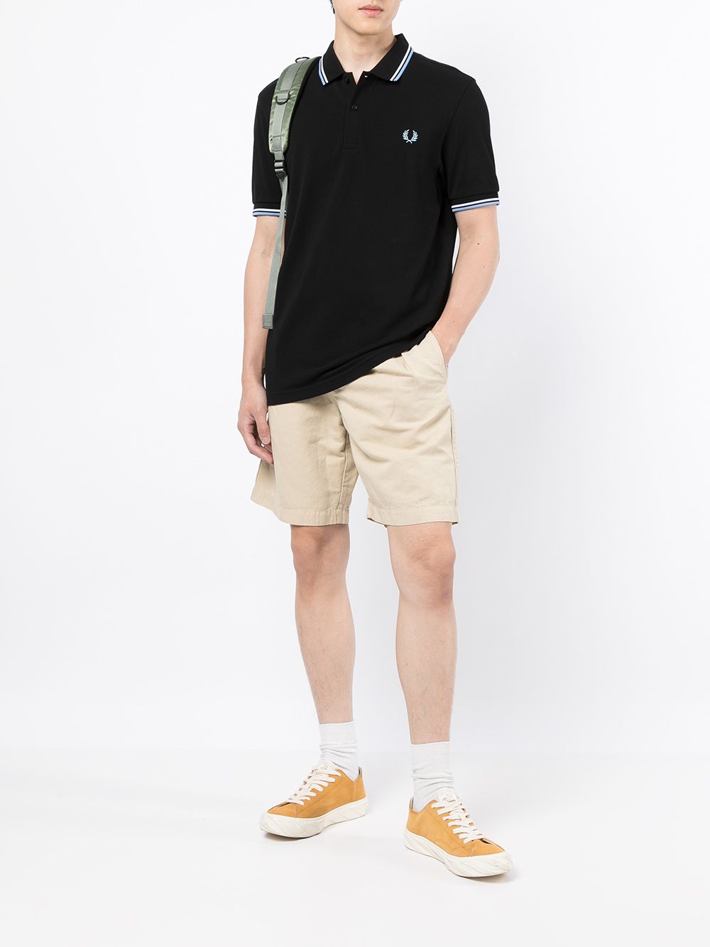 jet-black/white cotton polo collar front button placket short sleeves straight hem