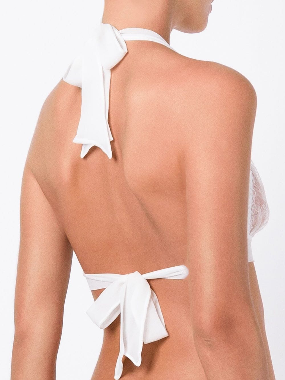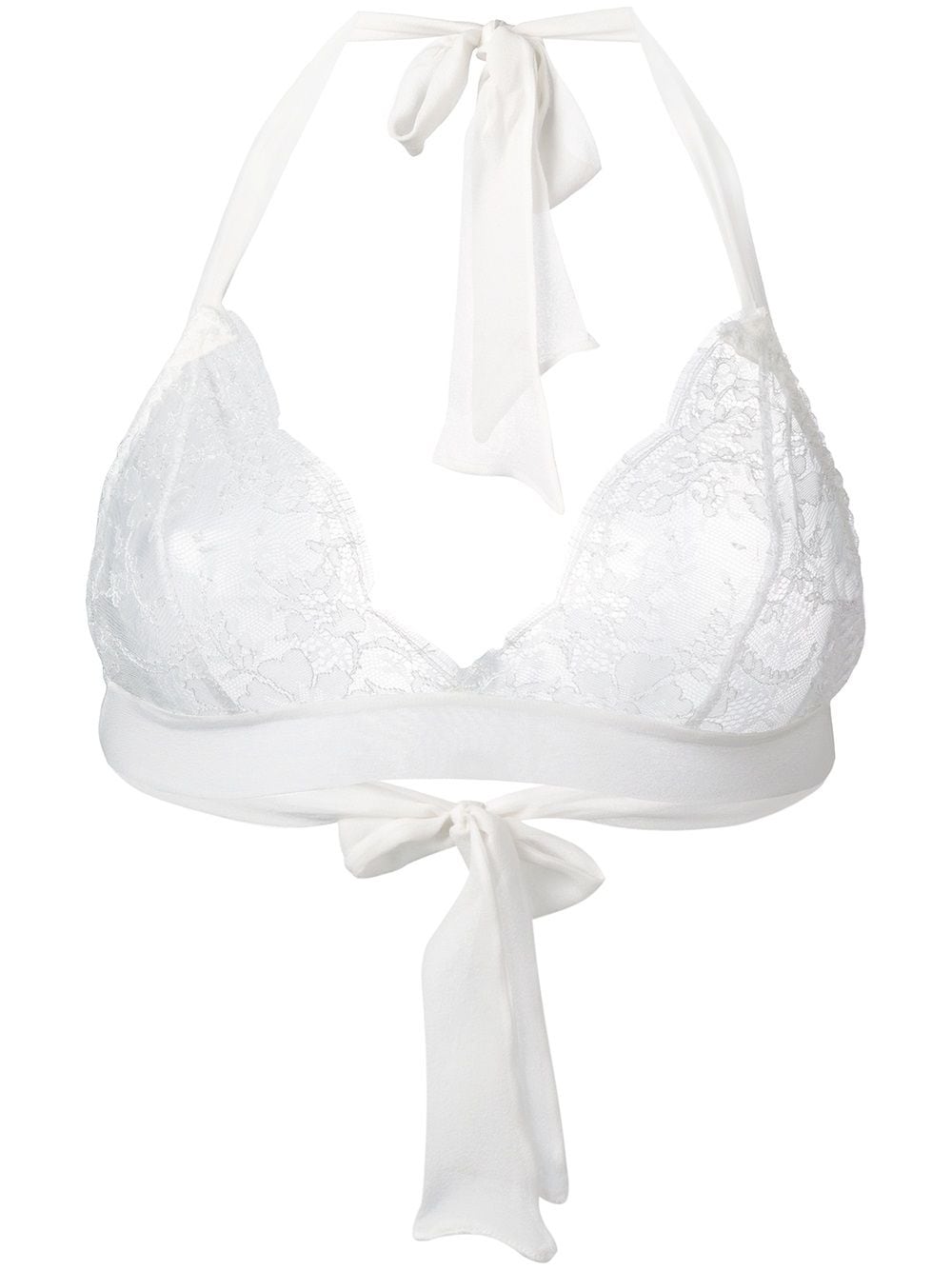 Ivory silk blend Ava Boudoir bra from Gilda & Pearl featuring a halter neck, lace panels, a wrap waist, a ribbon fastening and a non-wire construction. Underwear and lingerie must be tried on over your own garments. POSITIVELY CONSCIOUS: Gilda & Pearl scores 3 out 5 by independent ethical brand rating agency Good On You. It has a good animal rating and does not use fur, leather, wool, down, exotic animal skin or angora. It traces most of its supply chain manufactures locally to reduce its carbon footprint.