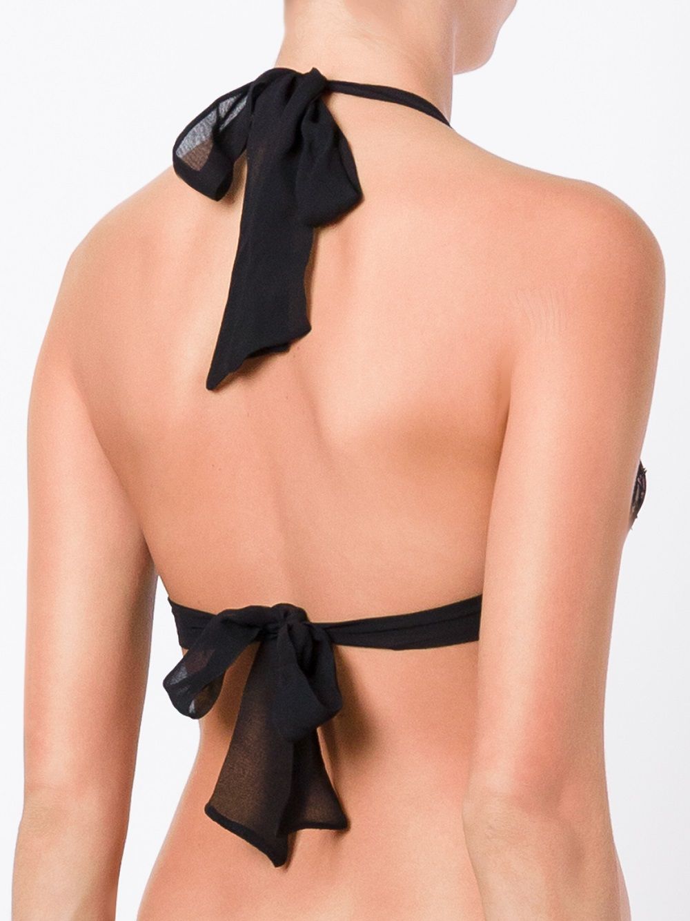 Black silk blend Ava Boudoir bra from Gilda & Pearl featuring a halter neck, lace panels, a wrap waist, a ribbon fastening and a non-wired construction. Underwear and lingerie must be tried on over your own garments. POSITIVELY CONSCIOUS: Gilda & Pearl scores 3 out 5 by independent ethical brand rating agency Good On You. It has a good animal rating and does not use fur, leather, wool, down, exotic animal skin or angora. It traces most of its supply chain manufactures locally to reduce its carbon footprint.