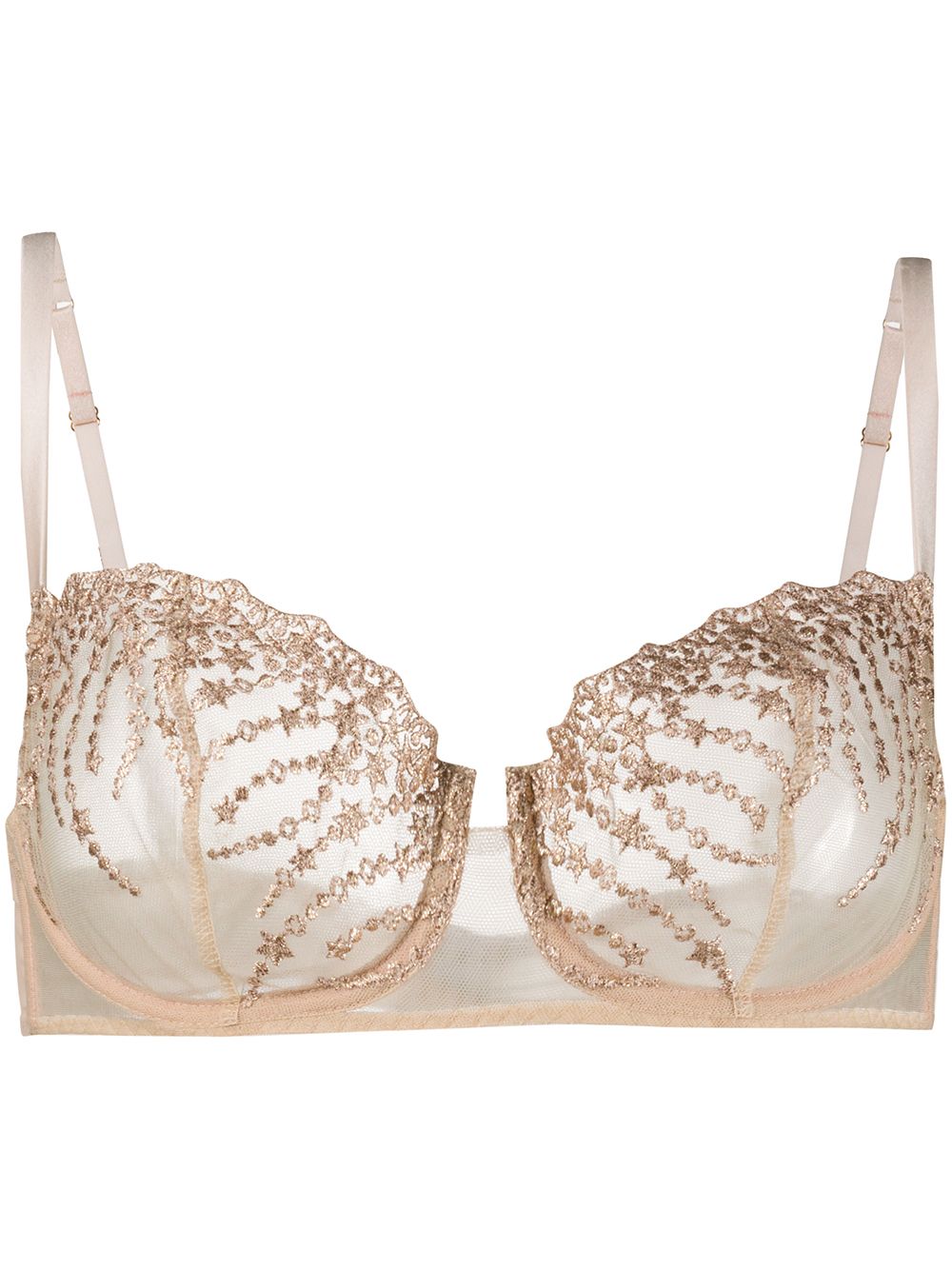 Beige silk Under The Stars bra from Gilda & Pearl featuring spaghetti straps. POSITIVELY CONSCIOUS: We’ve joined forces with ethical agency Good On You to give you the power to choose positively. This piece is from a brand that scores well on their key criteria. Underwear and lingerie must be tried on over your own garments.