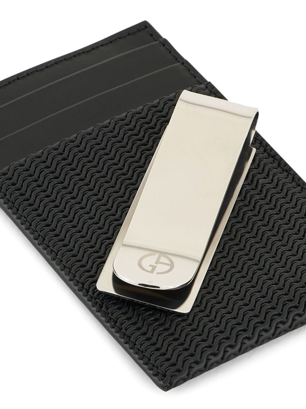 logo-plaque woven leather cardholder
