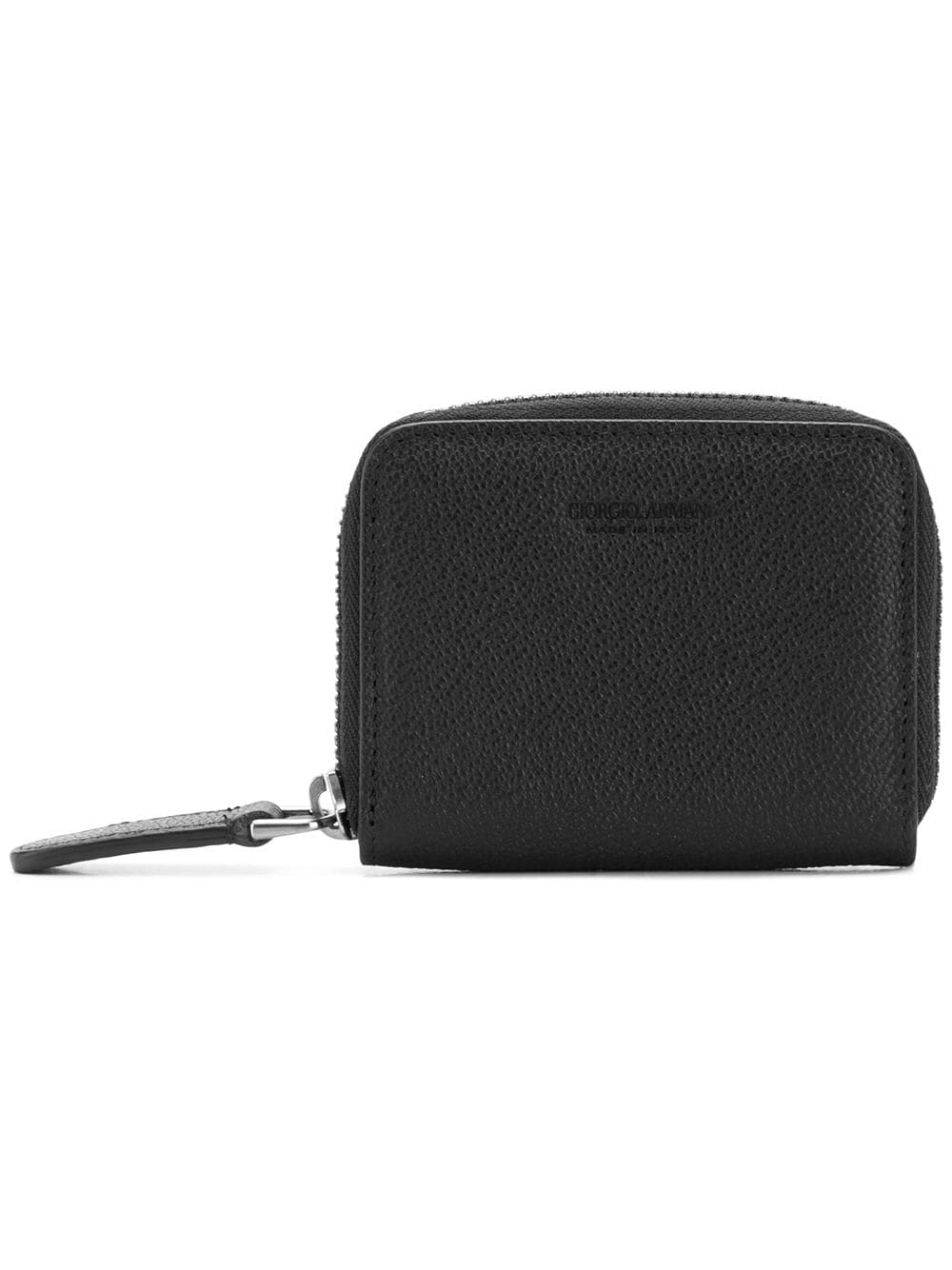 Black leather zip-around coin purse from Giorgio Armani featuring an all around zip fastening and a front embossed logo stamp.