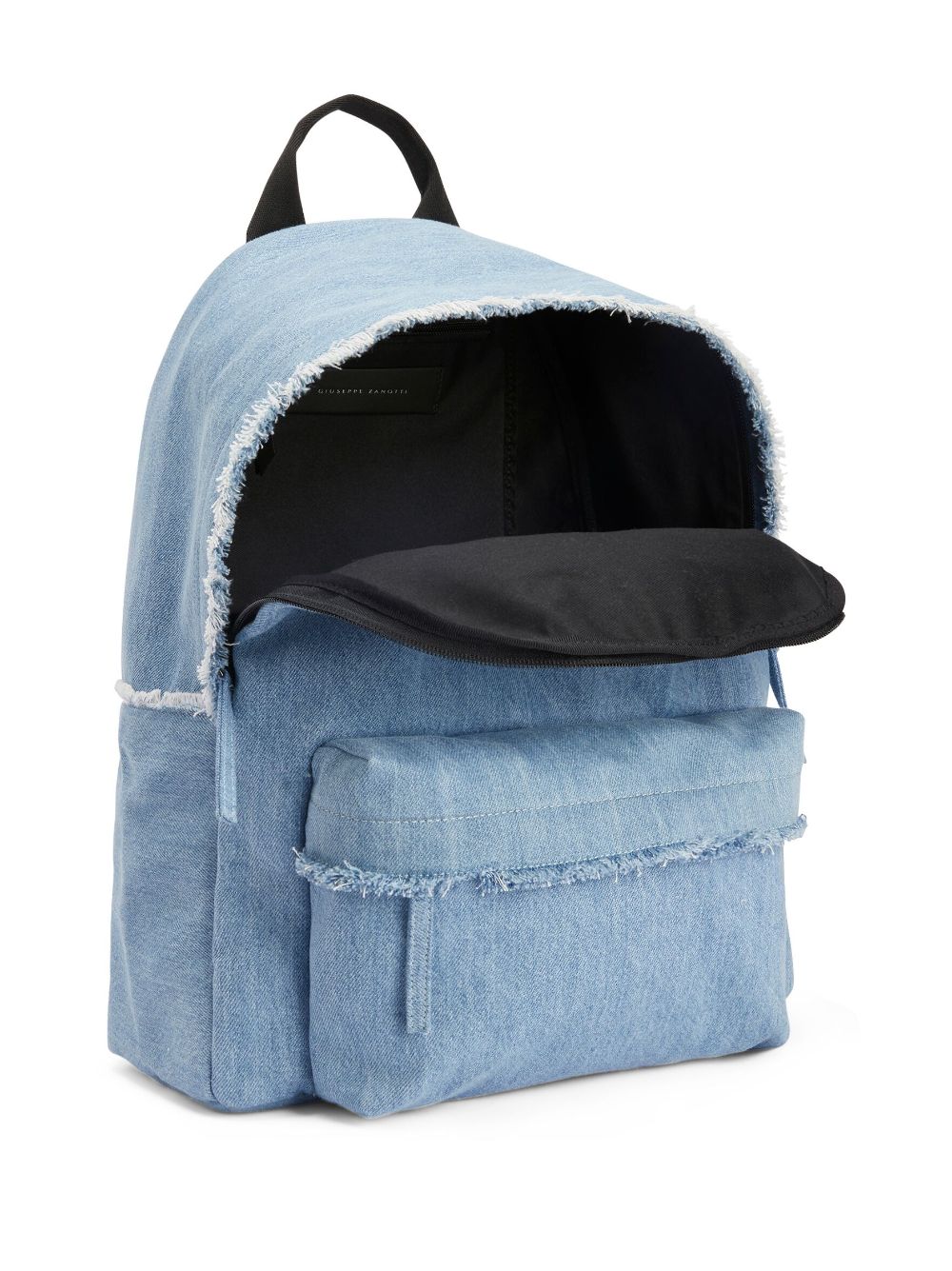 frayed denim backpack