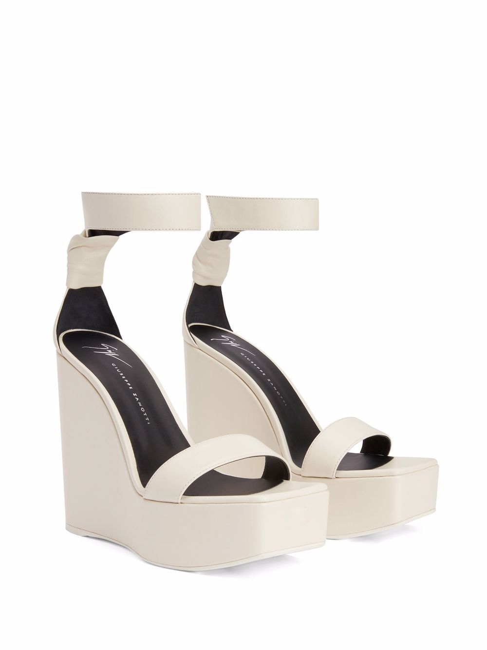 Giuseppe Zanotti is an Italian footwear and fashion designer, master in combining different details to create new and sleek designs. A fine example is the Meissa high heel sandal, crafted from white leather and detailed with an ankle touch strap and a knot detail at the rear.