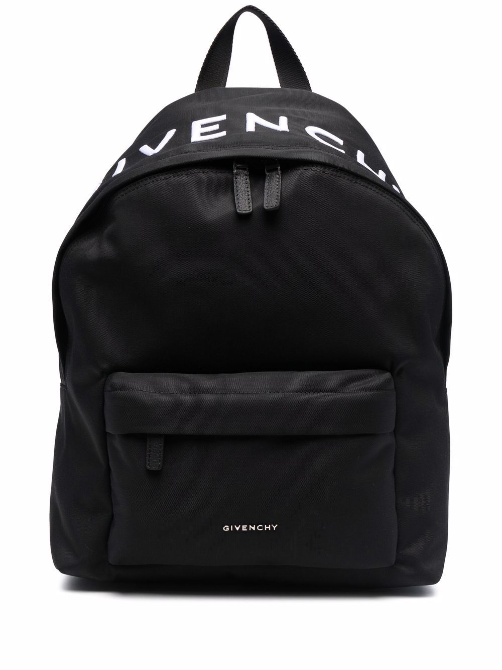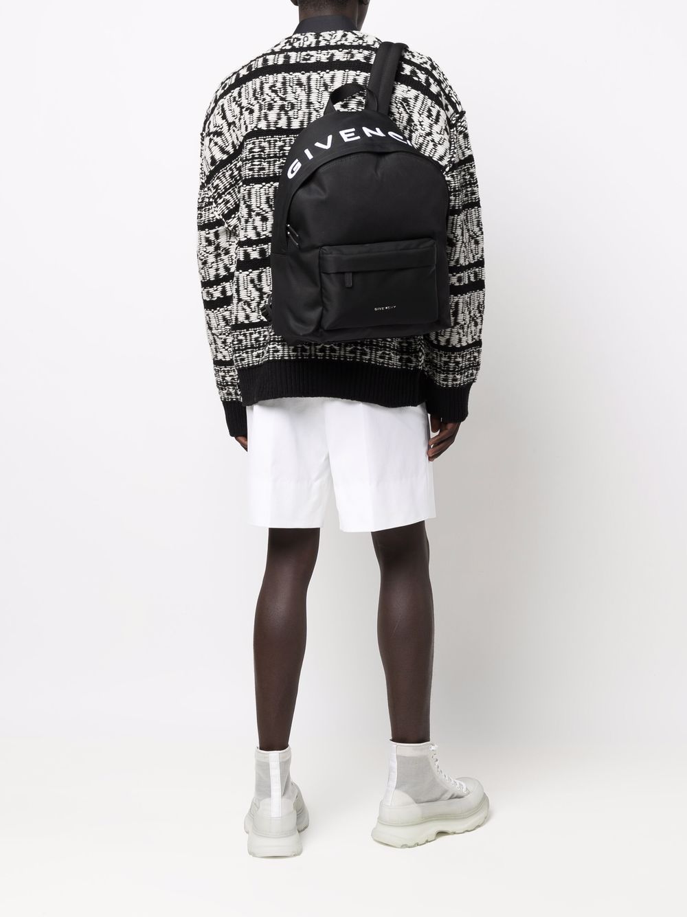 black/white embroidered logo logo plaque single top handle front two-way zip fastening front zip-fastening pouch pocket two adjustable shoulder straps main compartment