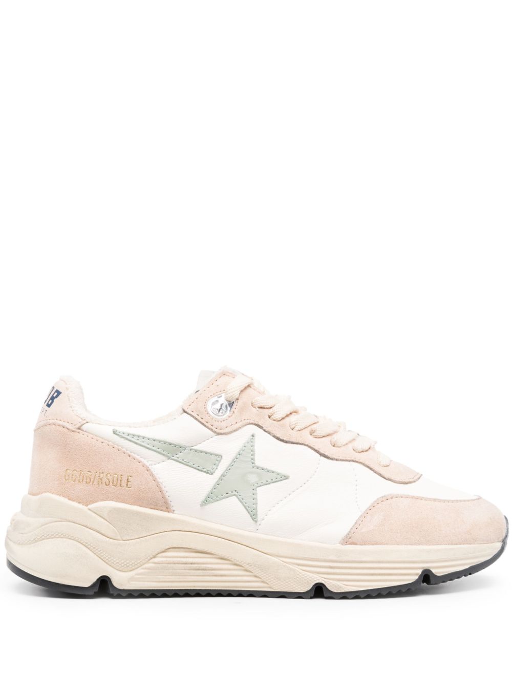 Golden Goose's signature star patch receives a sporty update in these Running Sole sneakers. Delivered in a uniquely athletic silhouette for the brand, their iconic patch to the side receives its fifth point in an elongated form, emphasising the speedy potential of the pair.
