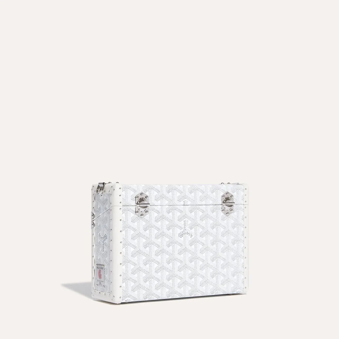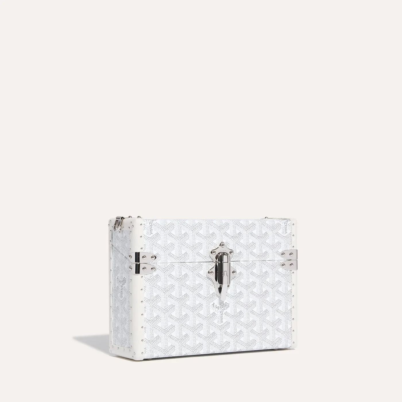 The Cassette Trunk expresses the innovative timelessness typical of Goyard, and stems from the Maison's seminal trades: trunk making and leather goods. Thanks to its clasp and compact size, its ideal for keeping everyday essentials safe and combines elegance, refinement and a lightness. Thanks to its additional strap, the bag can be worn in several different ways.