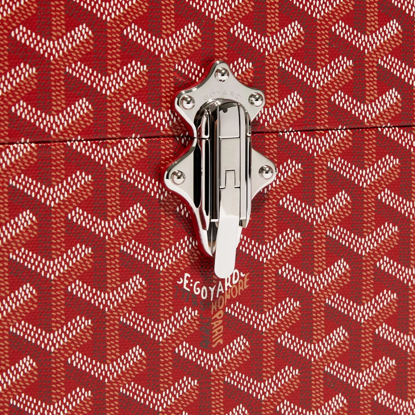 The Cassette Trunk expresses the innovative timelessness typical of Goyard, and stems from the Maison's seminal trades: trunk making and leather goods. Thanks to its clasp and compact size, its ideal for keeping everyday essentials safe and combines elegance, refinement and a lightness. Thanks to its additional strap, the bag can be worn in several different ways.