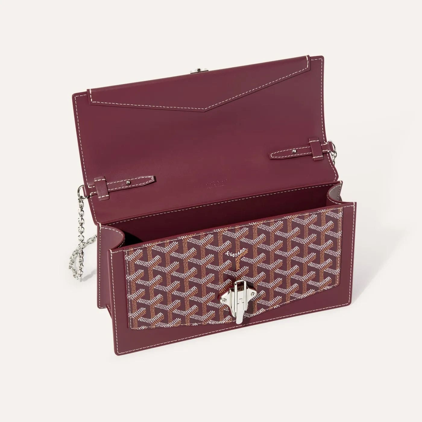 At once elegant and practical, the Duchess Marie-Caroline bag can be worn around the shoulder, cross-body style or carried by hand thanks to its removable chain strap. Its closing system is secured with a clasp, a nod to the historical trunk-making know-how of Maison Goyard. The Duchess Marie-Caroline bag is ideally complemented by the Insert Louise, as both share the same edgy look.