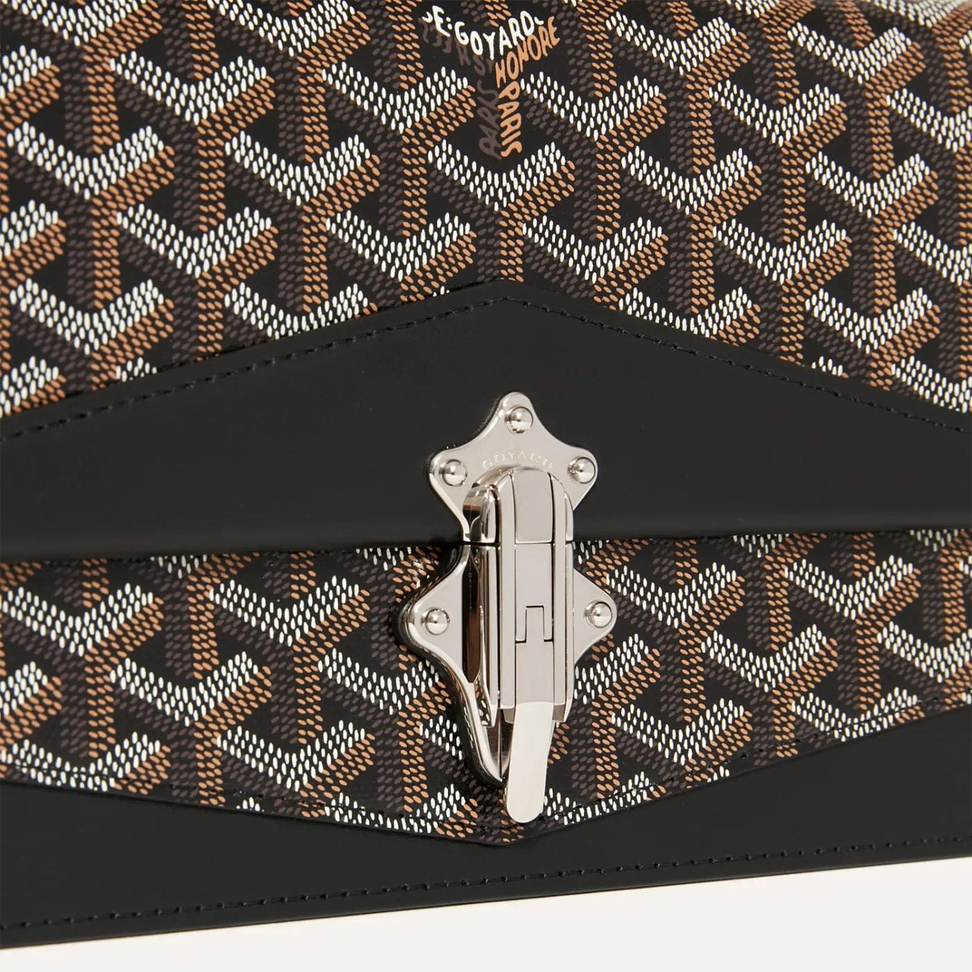 At once elegant and practical, the Duchess Marie-Caroline bag can be worn around the shoulder, cross-body style or carried by hand thanks to its removable chain strap. Its closing system is secured with a clasp, a nod to the historical trunk-making know-how of Maison Goyard. The Duchess Marie-Caroline bag is ideally complemented by the Insert Louise, as both share the same edgy look.