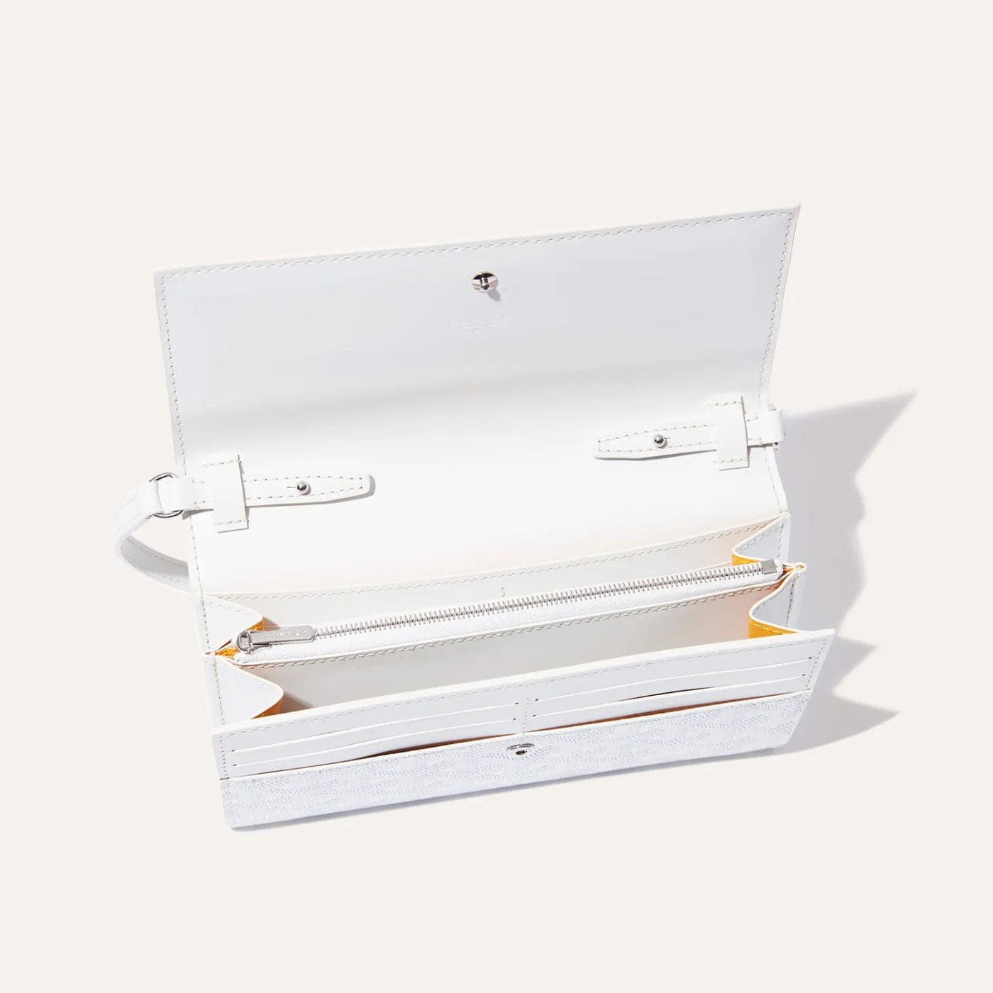 Designed with compartments for change, notes, and cards, the Varenne continental wallet can also be worn across the body with its removable strap.