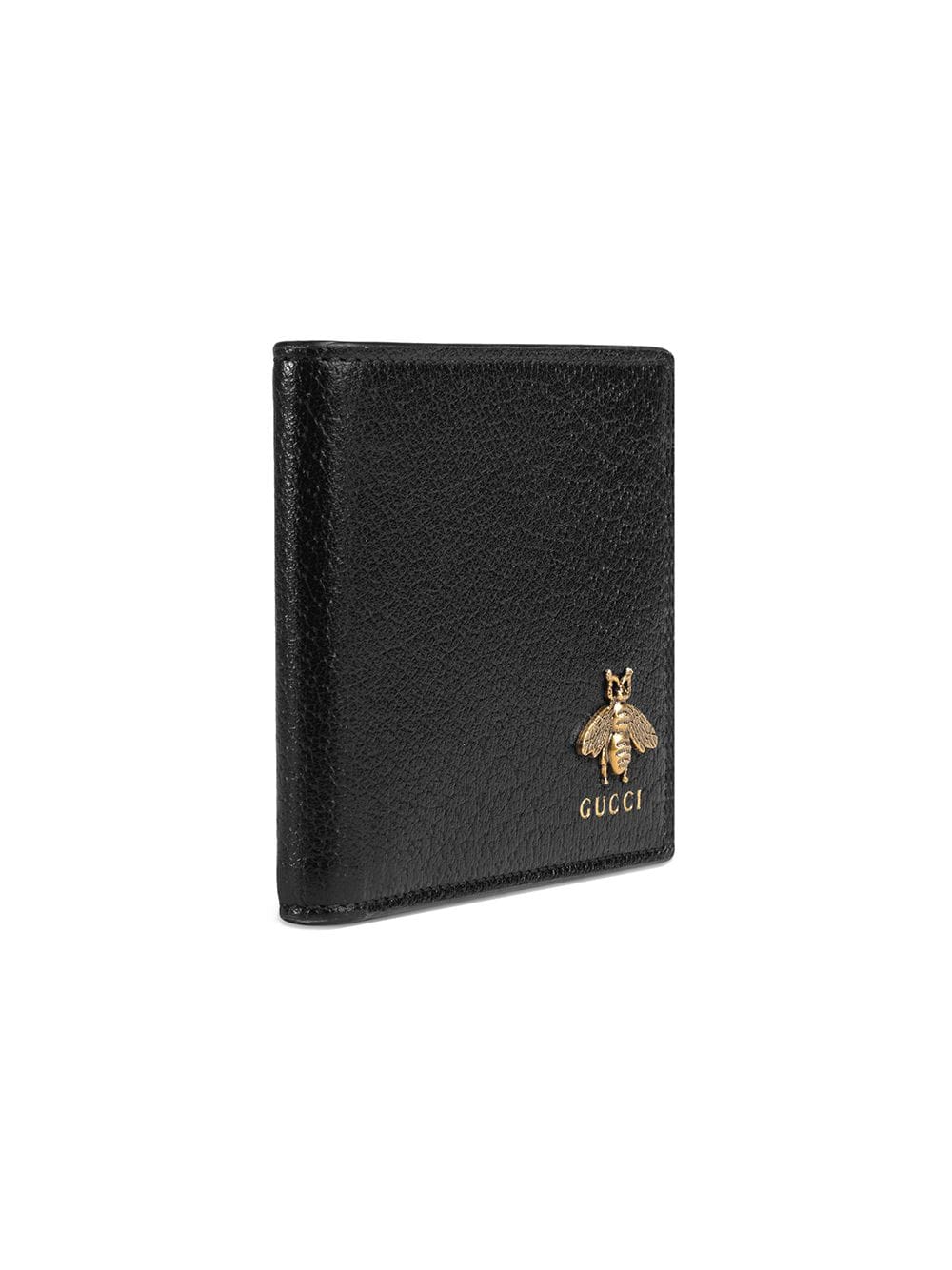 Part of the Animalier collection, the leather wallet features the distinctive metal bee detail. The bee is an archival code first introduced in Gucci ready-to-wear in the 1970s. Black leather. Antique gold-toned hardware. Metal bee. Gucci logo. Eight card slots and two bill compartments. Open: W21cm x H9cm. Closed: W11cm x H9cm. Made in Italy. POSITIVELY CONSCIOUS: This product contains leather made through an alternative metal or chrome free tanning process, reducing the environmental footprint compared to traditional methods.