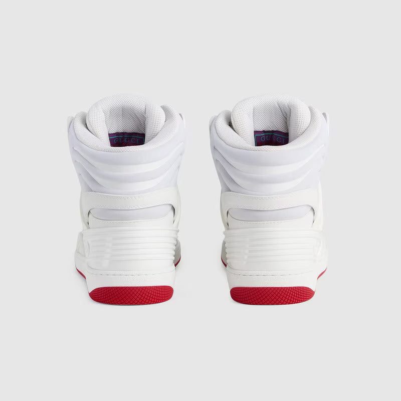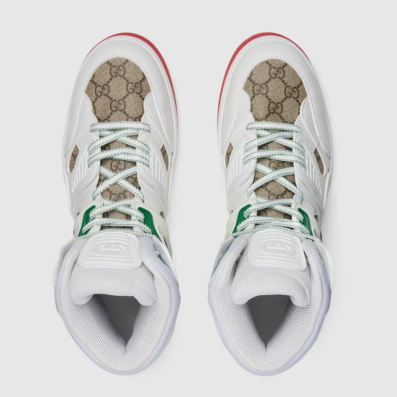 Sporting a look synonymous with basketball sneakers from the ‘90s, the House introduces the newest rendition of the lace-up sneaker—Gucci Basket. This high-top style emulates the self-expression of on-court aesthetic with distinctive features and detailing. The high top sneaker is crafted from a mix of GG Supreme canvas and white Demetra. Created with the same processes used for tanning, the new material offers pliable and resilient performance with a supple finish. The eco-friendly material combines animal-free raw materials primarily from sustainable, renewable, and bio-based sources.
