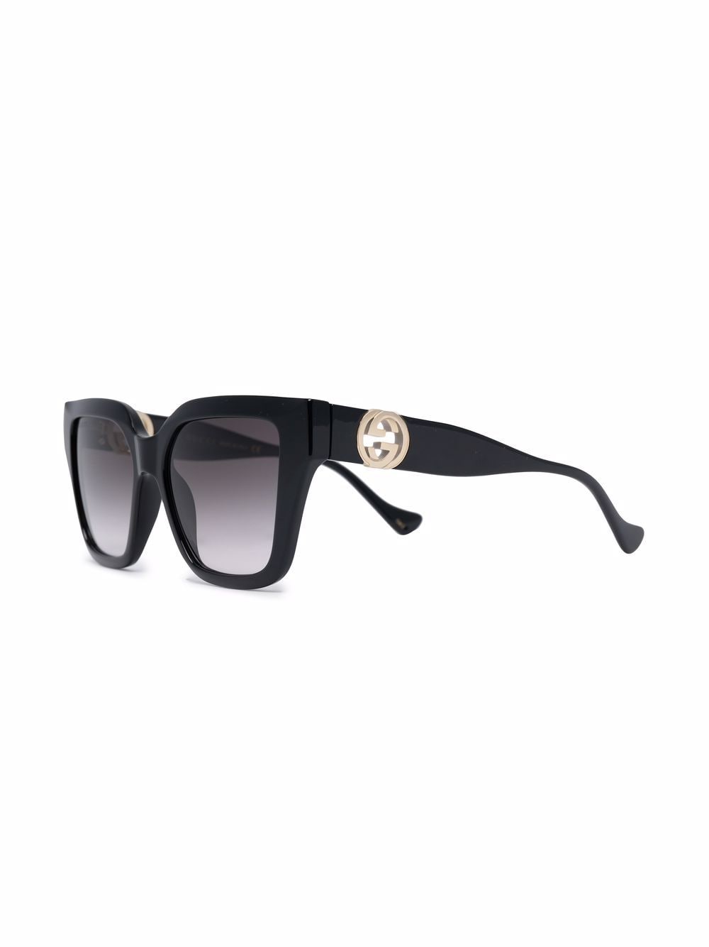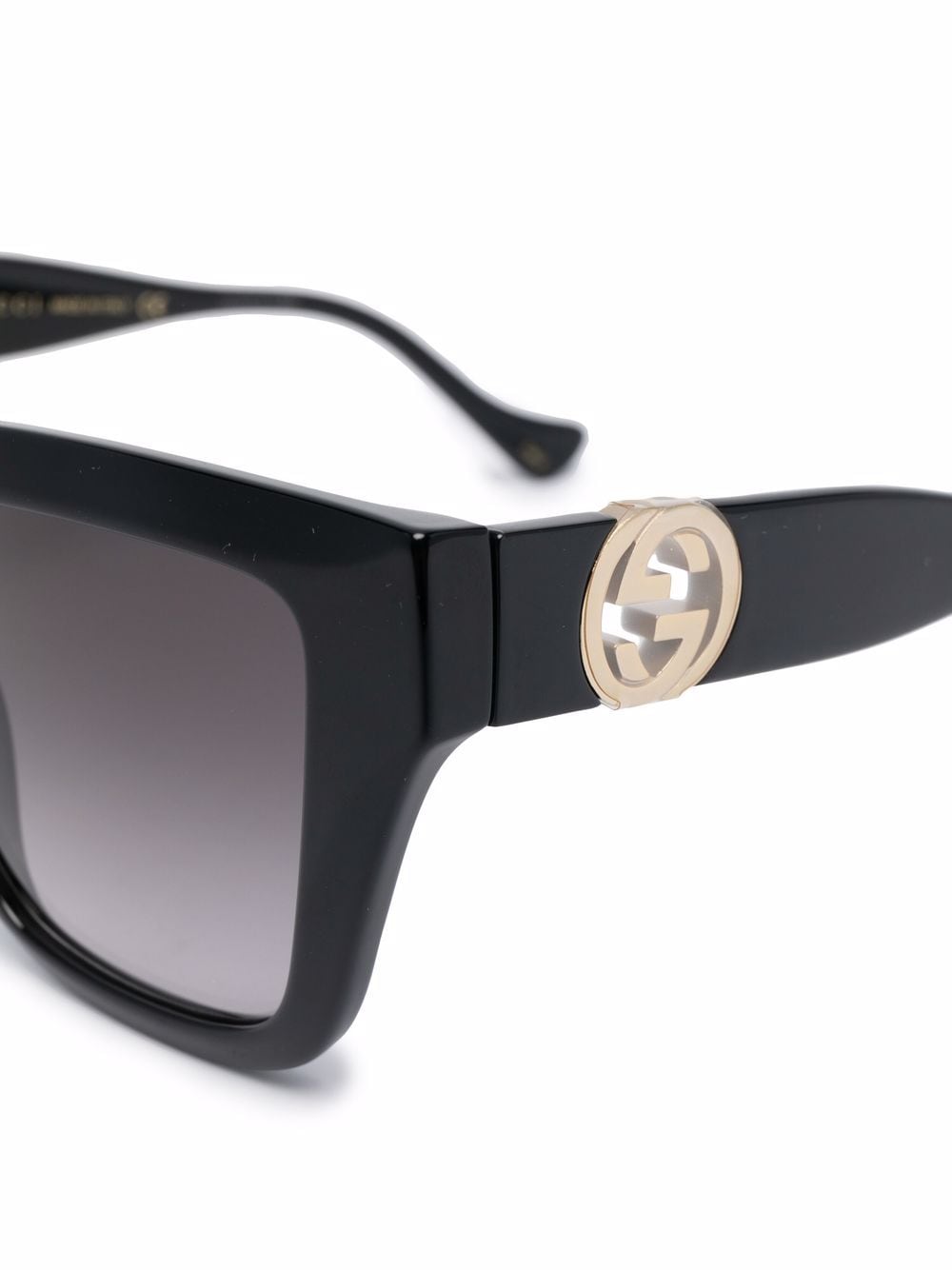 Black GG arm sunglasses from GUCCI EYEWEAR featuring gold-tone hardware, logo plaque at the arm, square frame, gradient lenses and curved tips. These glasses come with a protective case.. All glasses from FARFETCH are sold as non-prescription frames..