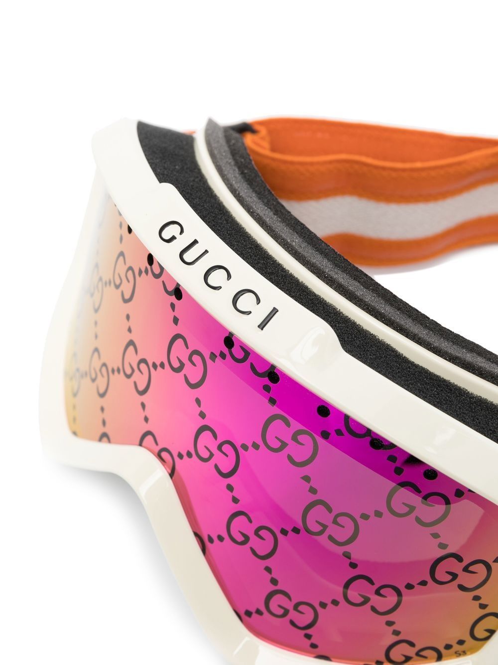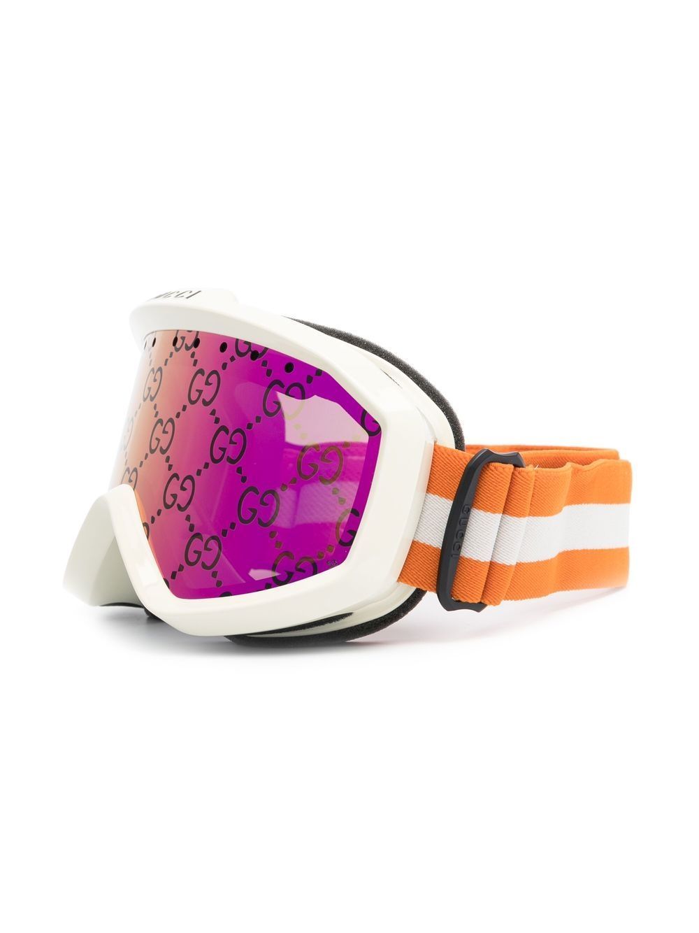 Designed for mountainous adventures and glossy peaks, these Gucci Eyewear sunglasses are eqipped with sporty details and technical features. Characterised by brown and pink guccissima lens with vibrant logo detailing, they're finished with an orange and white Web strap.