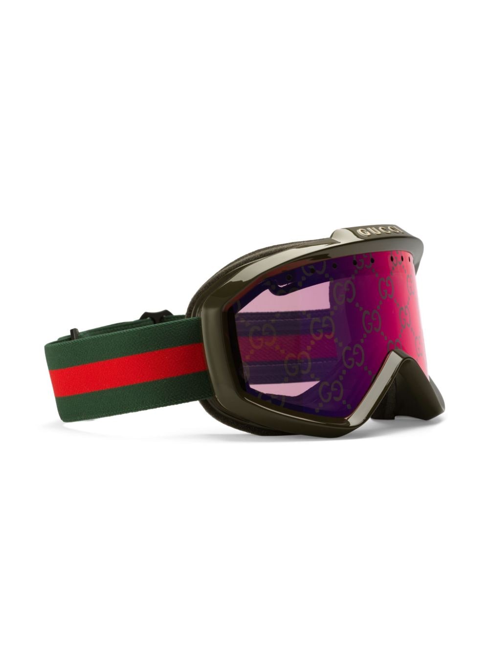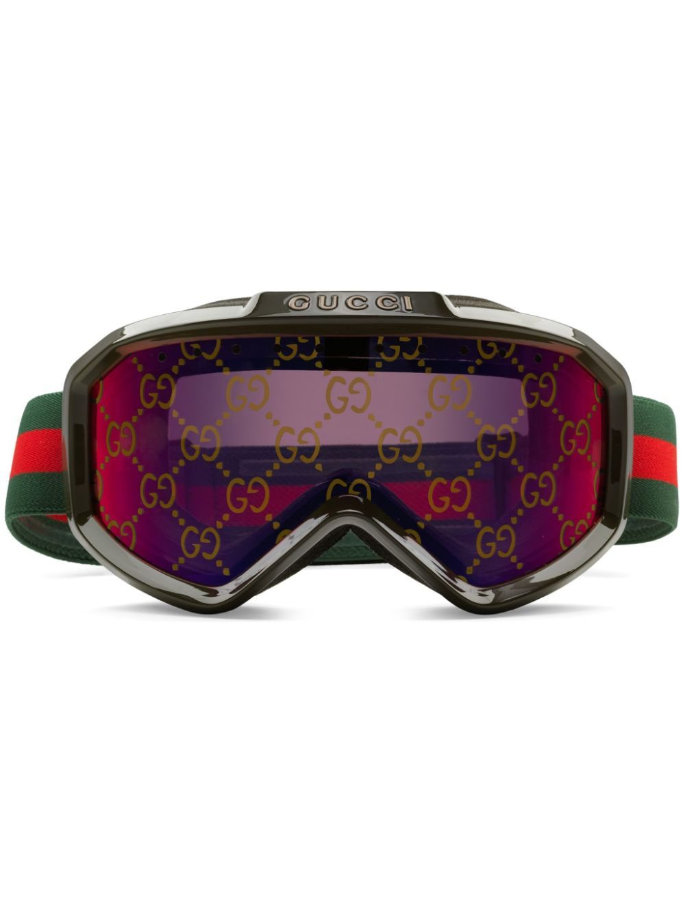 These Gucci Eyewear ski goggles are a practical alpine accessory doused in house codes. The Web stripe at the adjustable strap derives from the founder’s years working at the Savoy hotel while the guccissima print at the lenses is a nod to heritage branding. The red and blue mirrored finish is suited to a range of slope conditions.