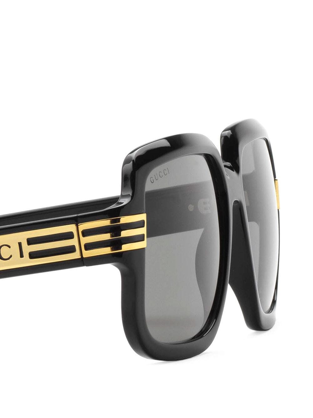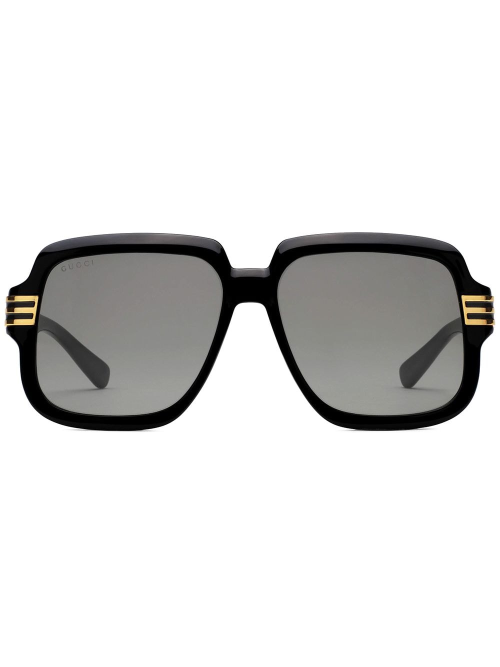 Bring the ‘70s back with these Gucci Eyewear oversized sunglasses. With an oversized-frame and tinted lenses, this pair has a logo print on the arm. Palazzo trousers and Gucci sunglasses.