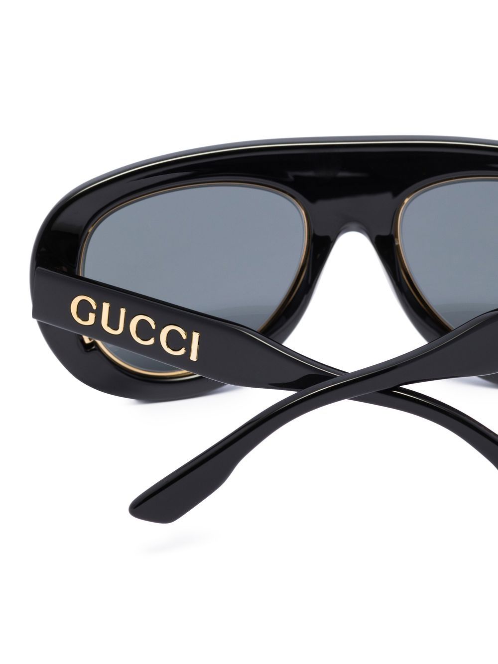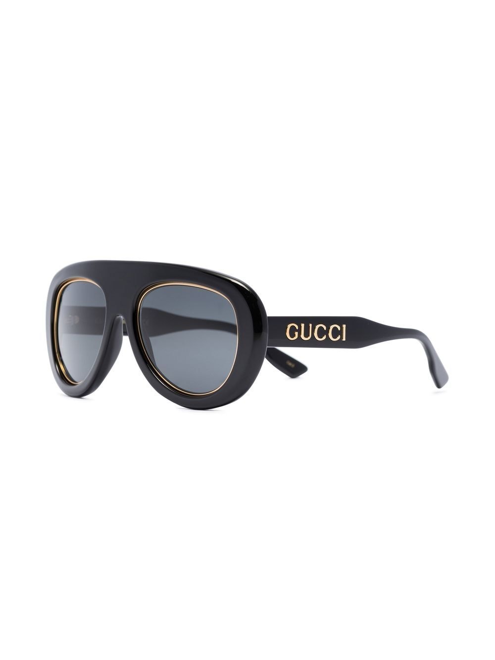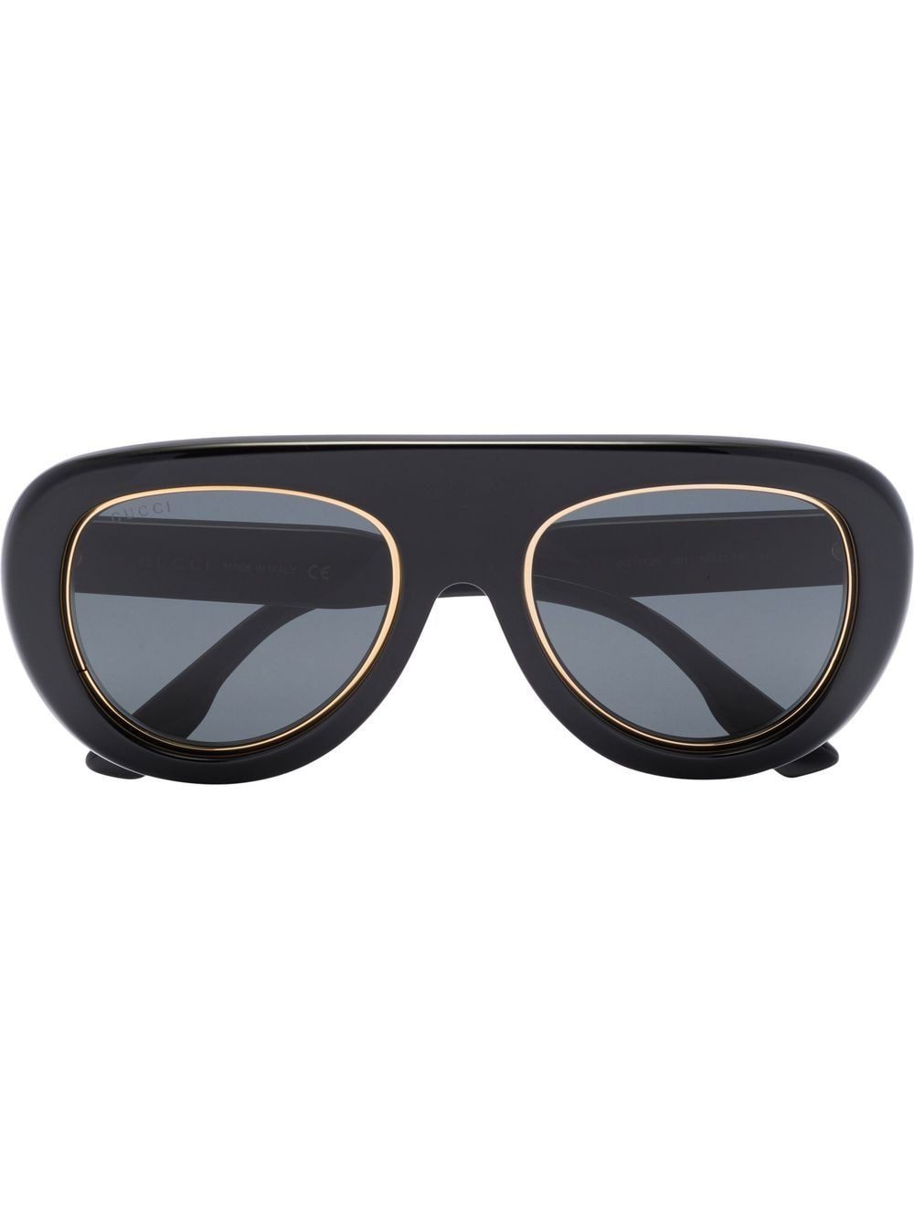Defined by their bold and unique frame, these navigator-shaped sunglasses showcase Gucci's contemporary aesthetic. The gold-toned metal rim adds a sophisticated twist, as well as an embossed logo in the same colourway.