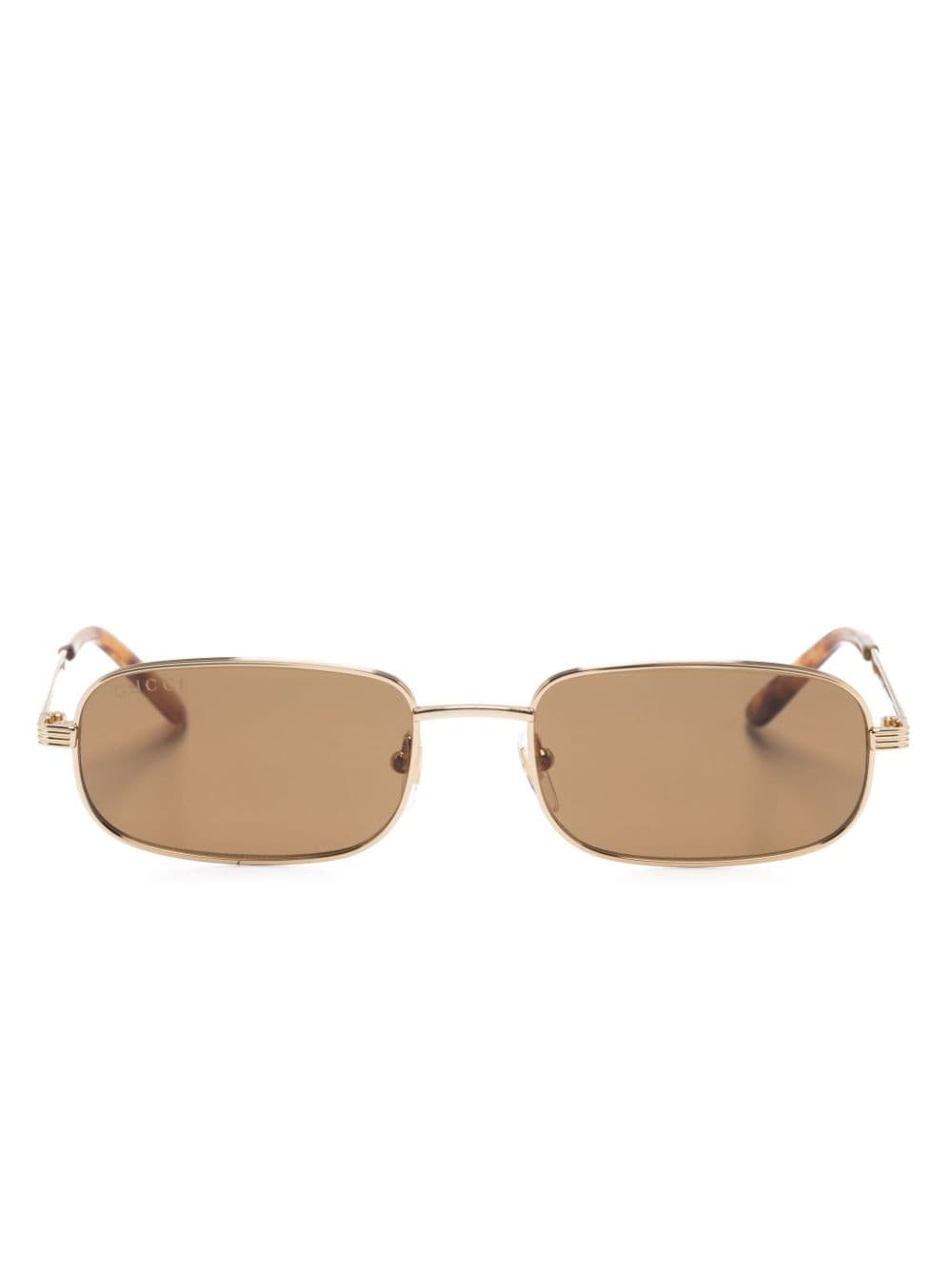 These Gucci Eyewear sunglasses are defined by their minimalist rectangle frame: it's slim and crafted from gold-tone metal. They feature brown-tinted lenses and a logo detail at the temples.