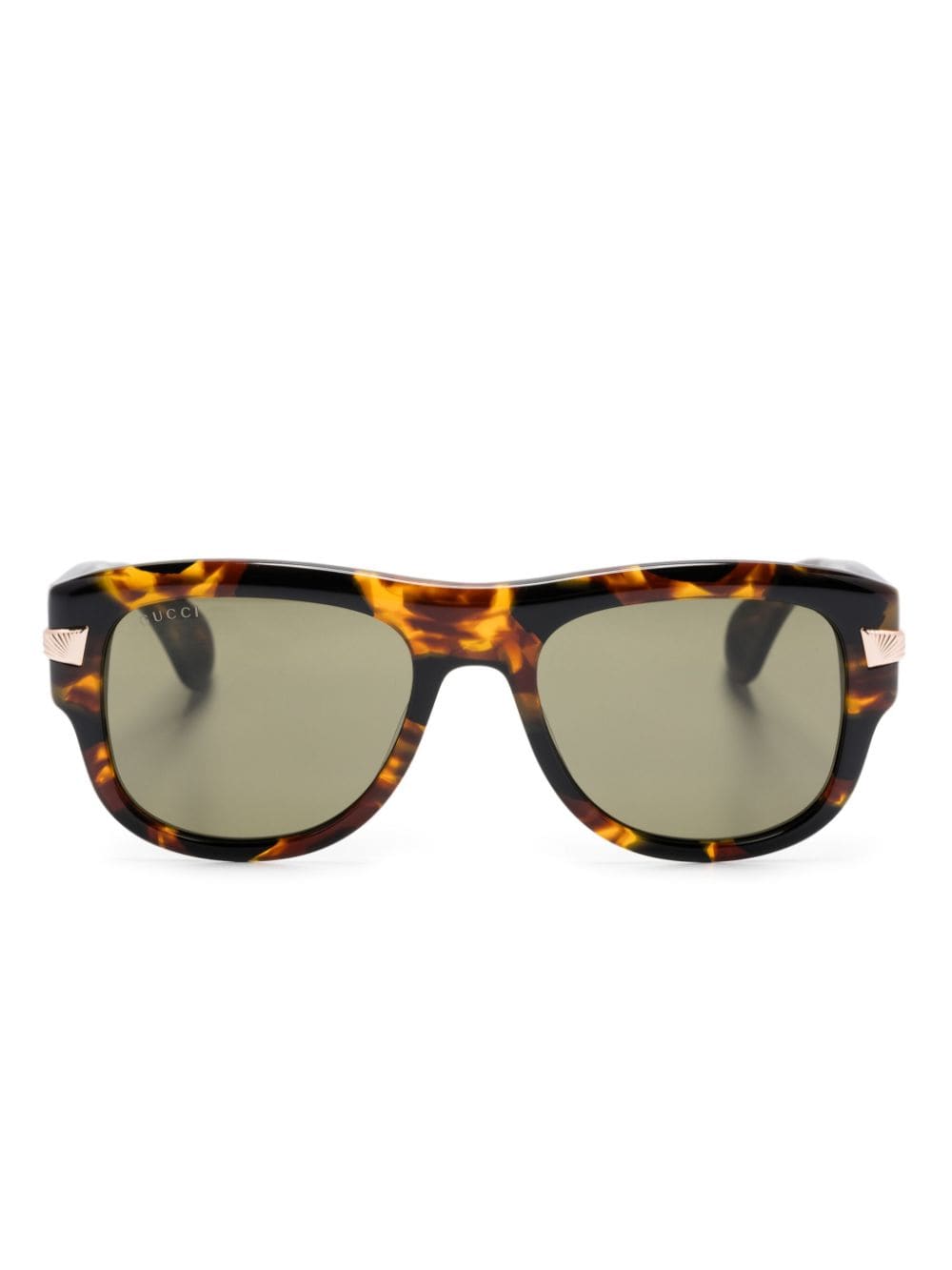 These Gucci Eyewear sunglasses are crafted to a classic square-frame silhouette from tortoiseshell-effect acetate and a chunky brow bar. They’re fitted with green tinted lenses and detailed with etched rose gold-tone hardware at the that wraps around the temples.