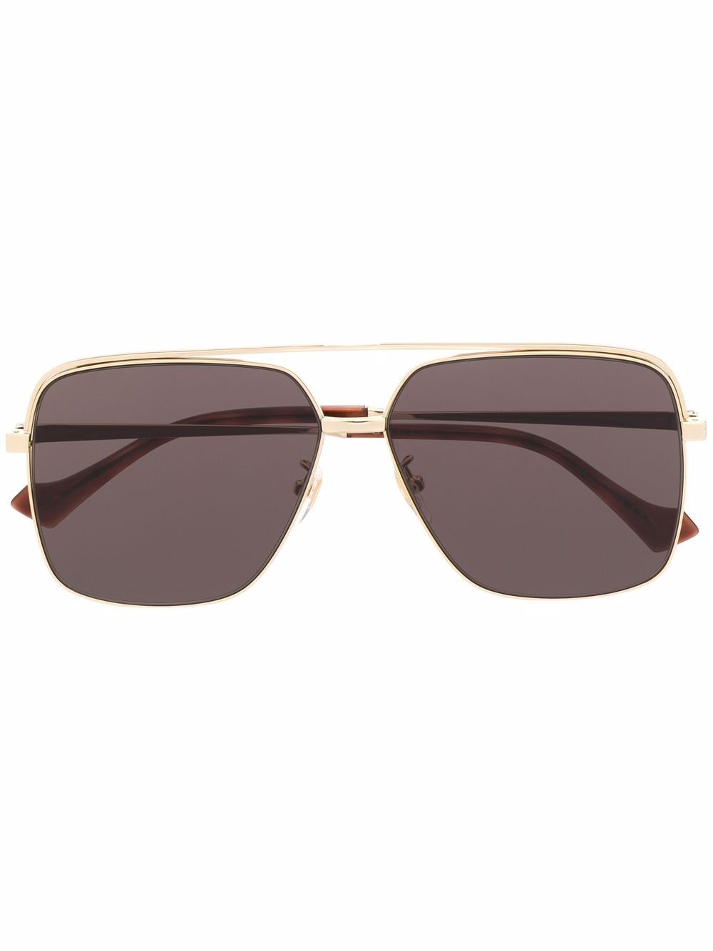 gold-tone/brown titanium/acetate square frame double bridge brown tinted lenses These glasses come with a protective case.