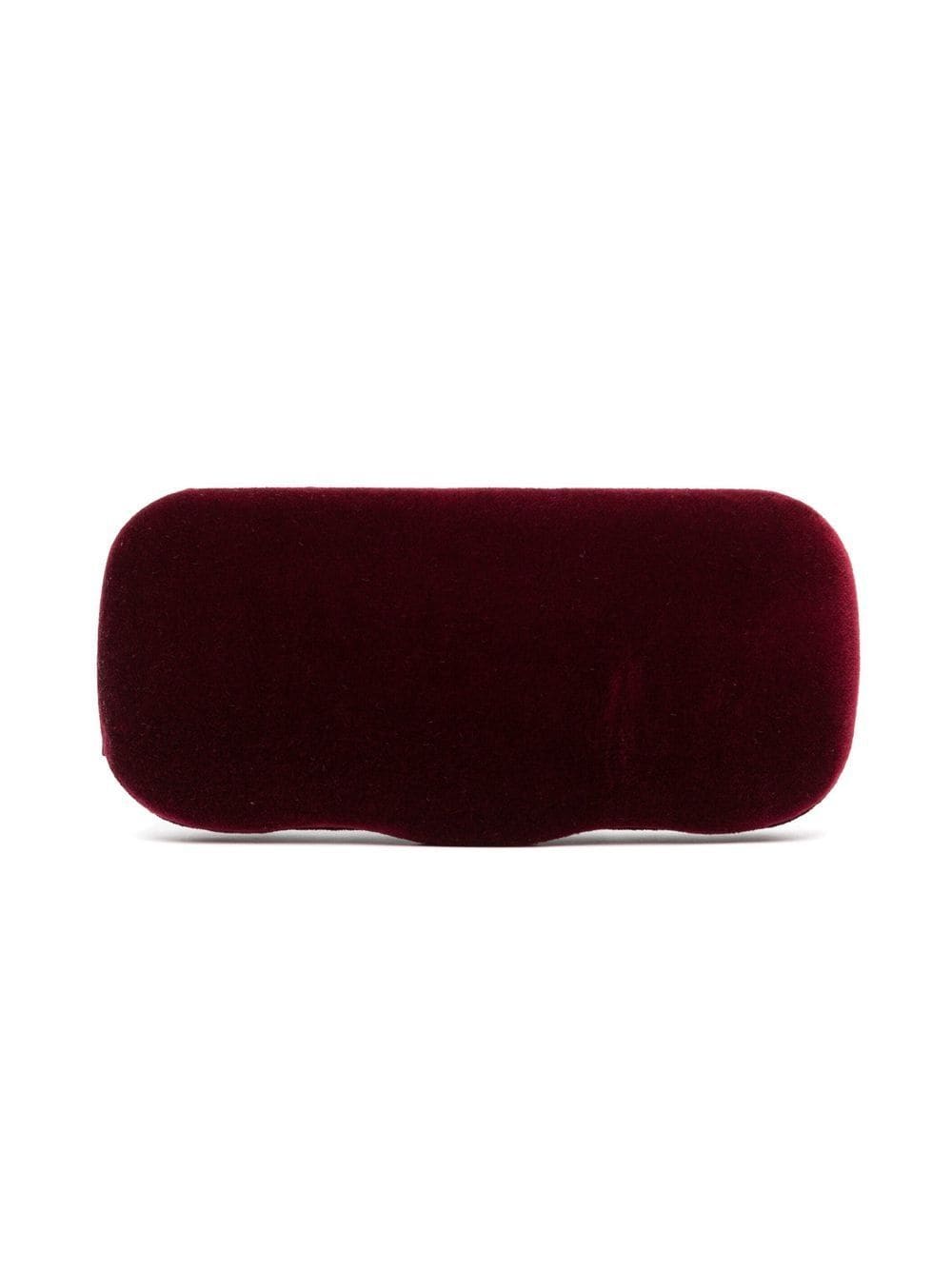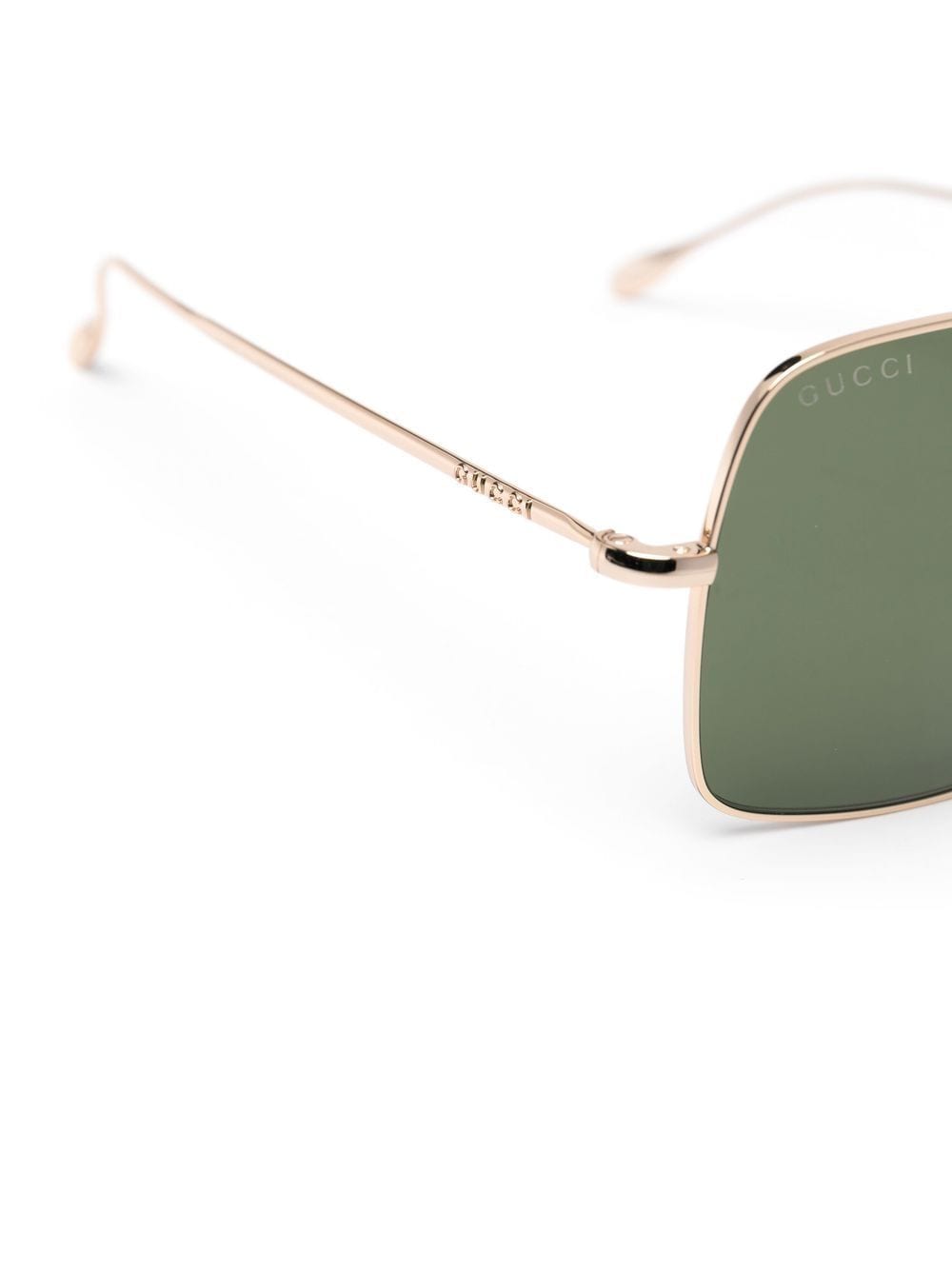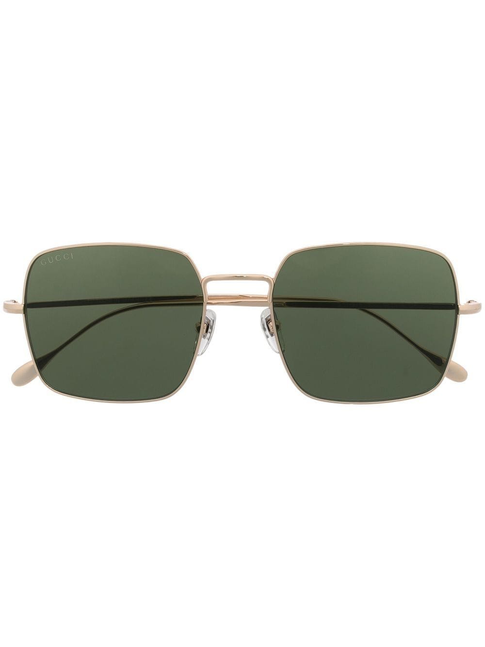 gold-tone metal square frame green tinted lenses nose pads straight arms curved tips These glasses come with a protective case.
