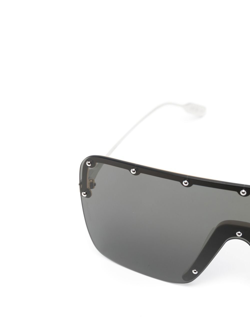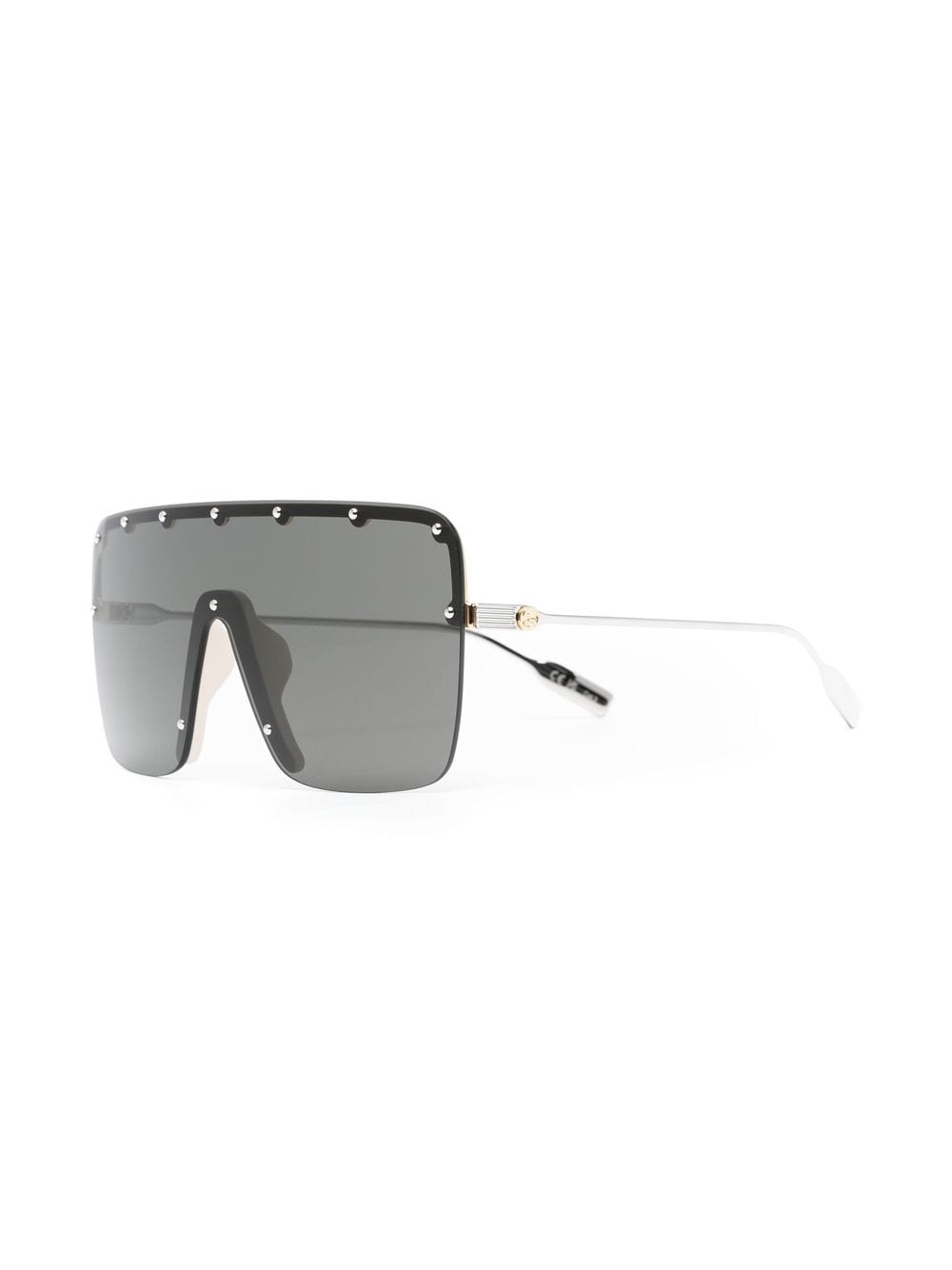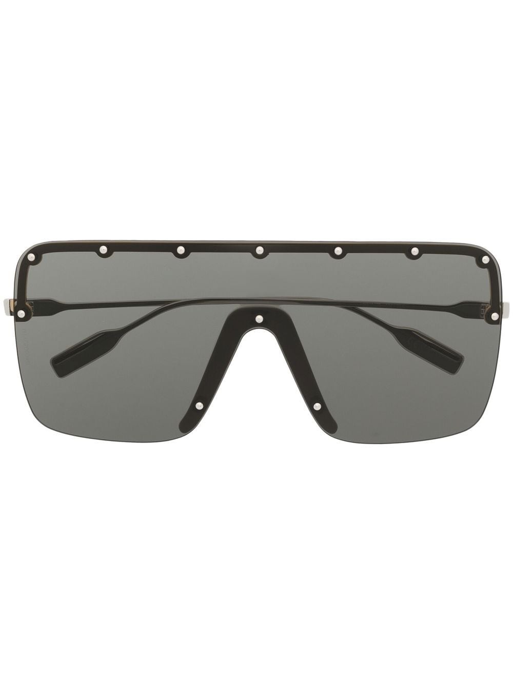 silver-tone metal logo plaque at the arm tinted lenses oversize frame These glasses come with a protective case.