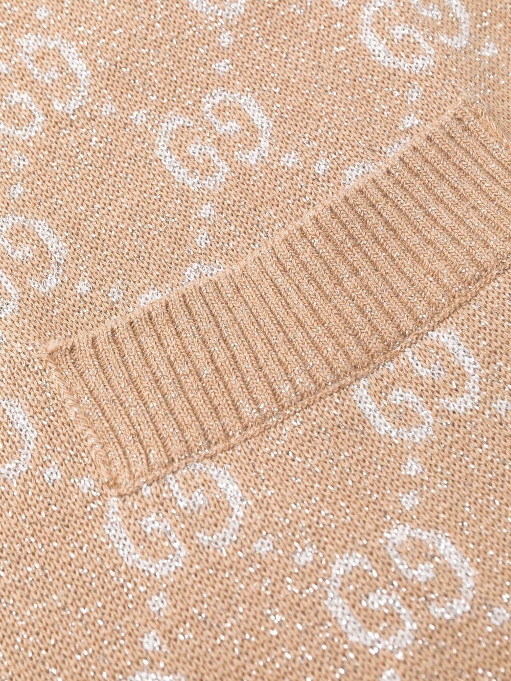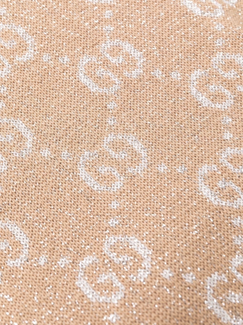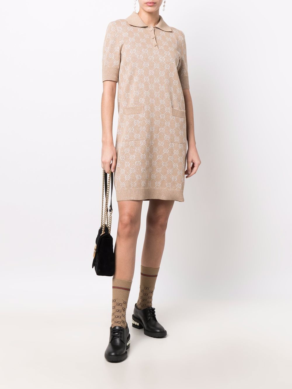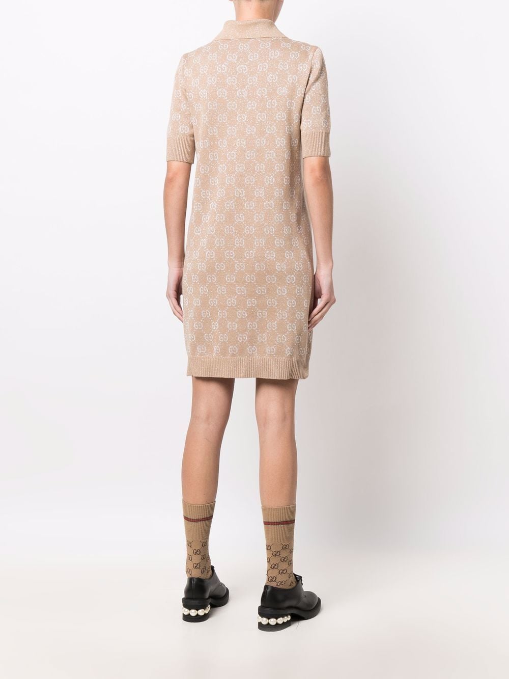 beige cotton blend jacquard G monogram motif polo collar short sleeves front button placket straight hem