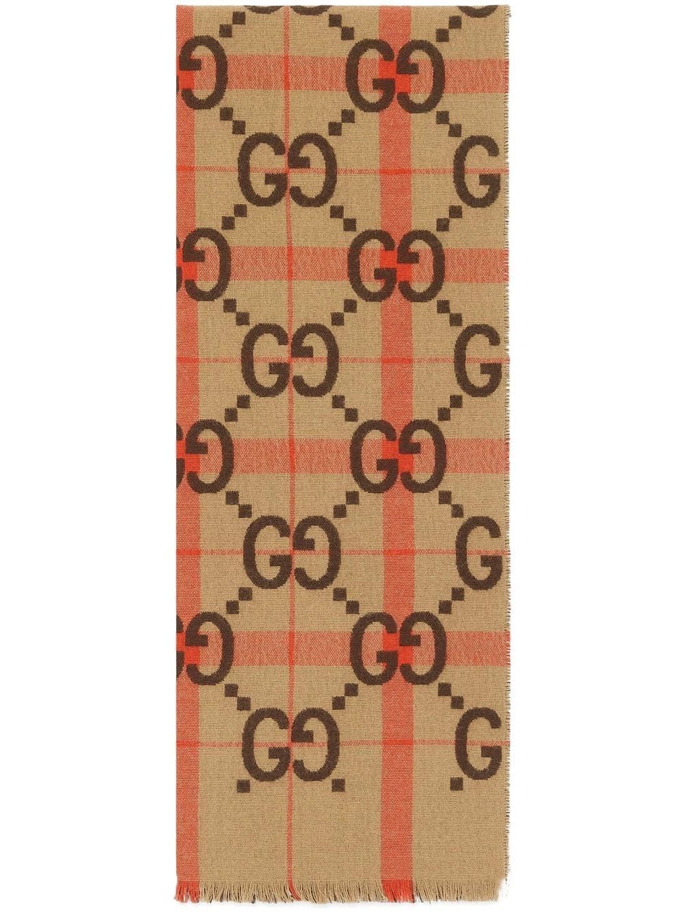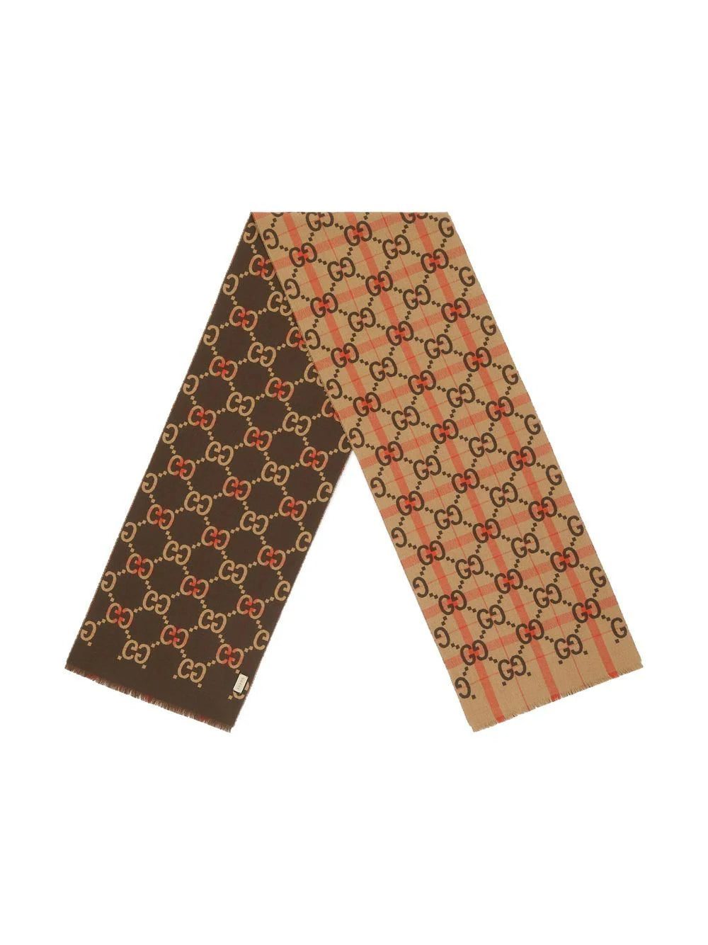 Inspired by the archival rhombi pattern from the '30s, the GG monogram is presented as a jacquard motif on this wool scarf. Reimagined each season in new ways, the symbolic pattern is mixed with a classic check motif.