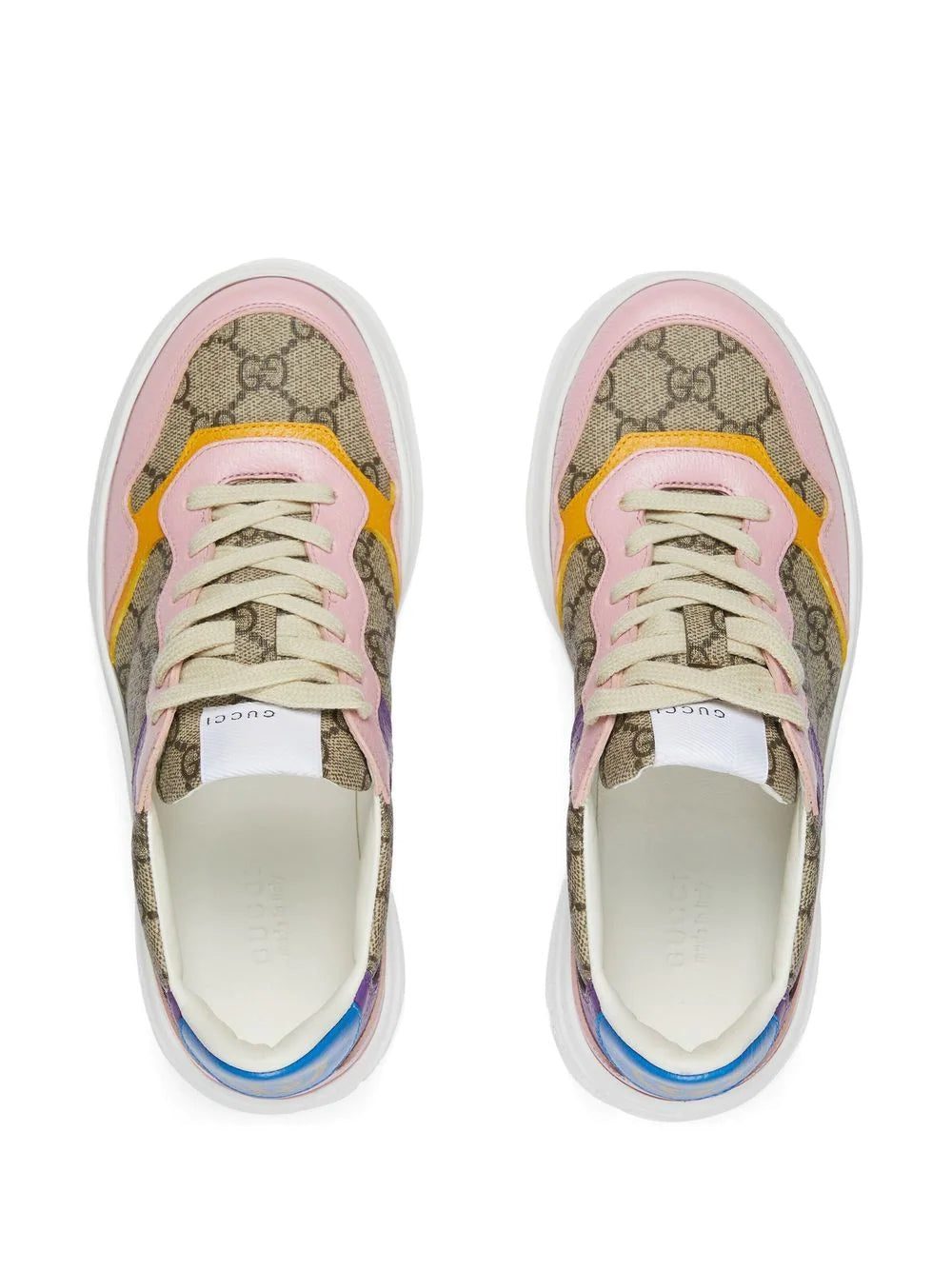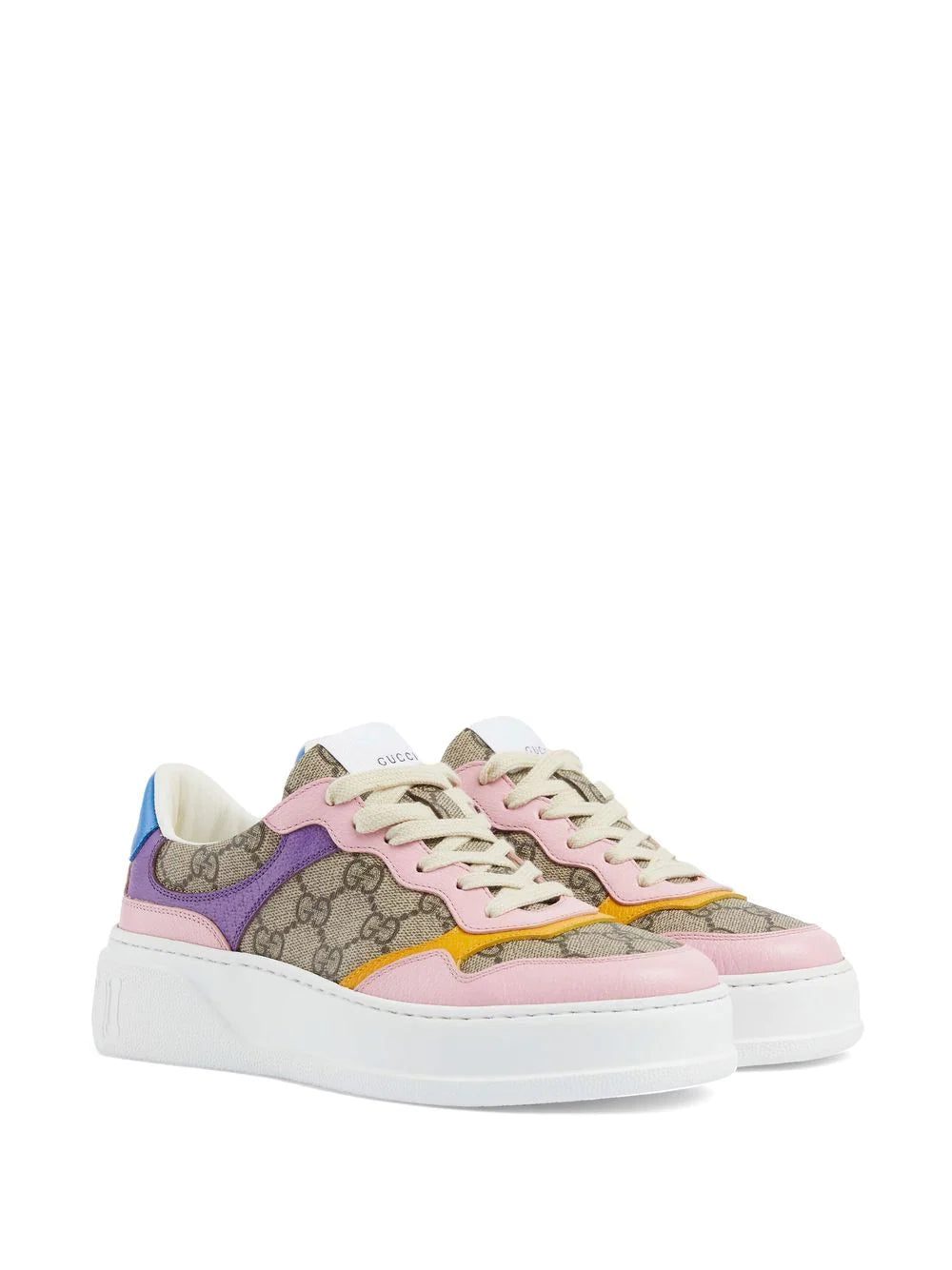Gucci reimagines their GG Supreme canvas with pastel leather panels here, creating a playful twist on an iconic detail for these low-top sneakers.