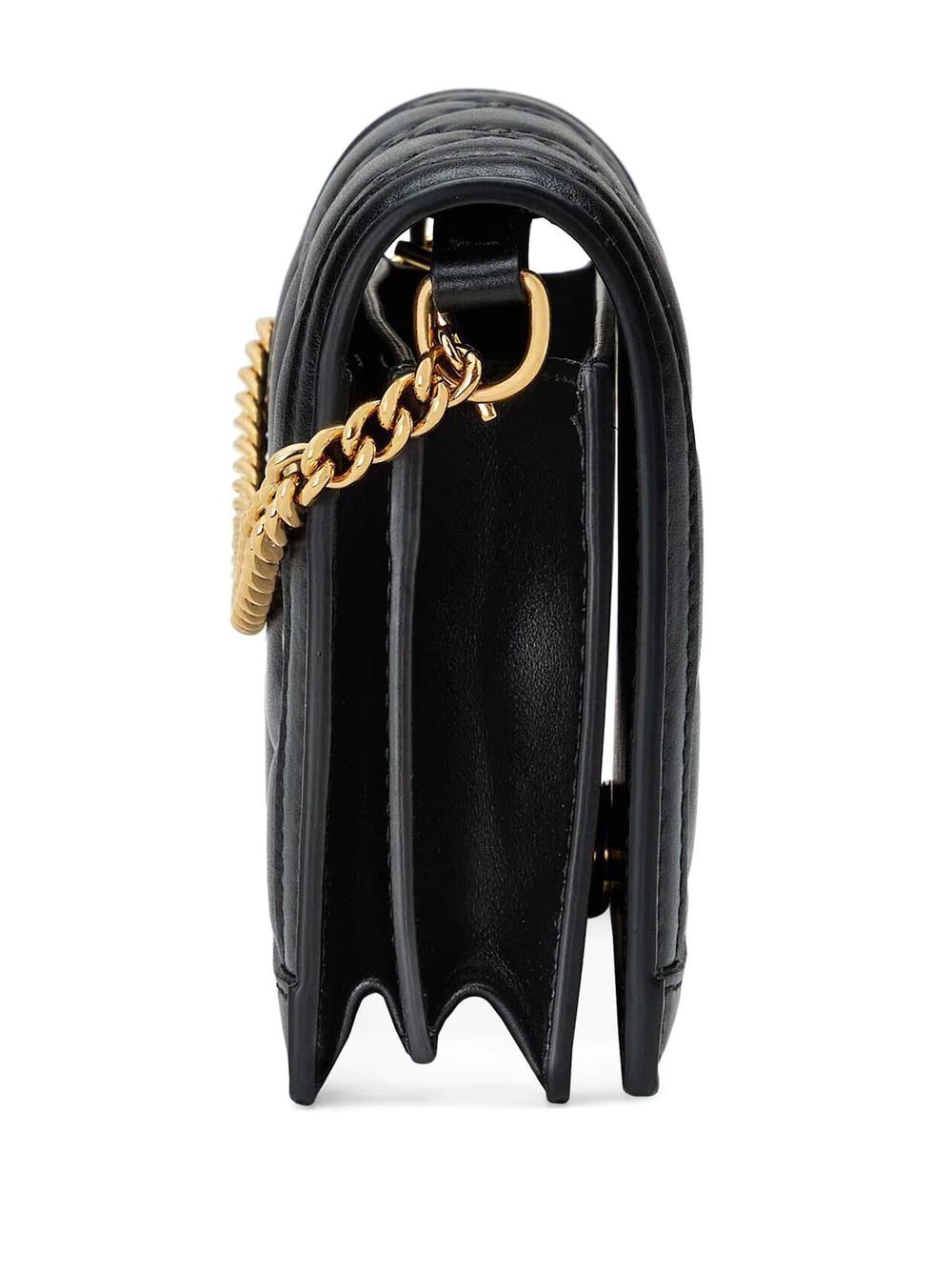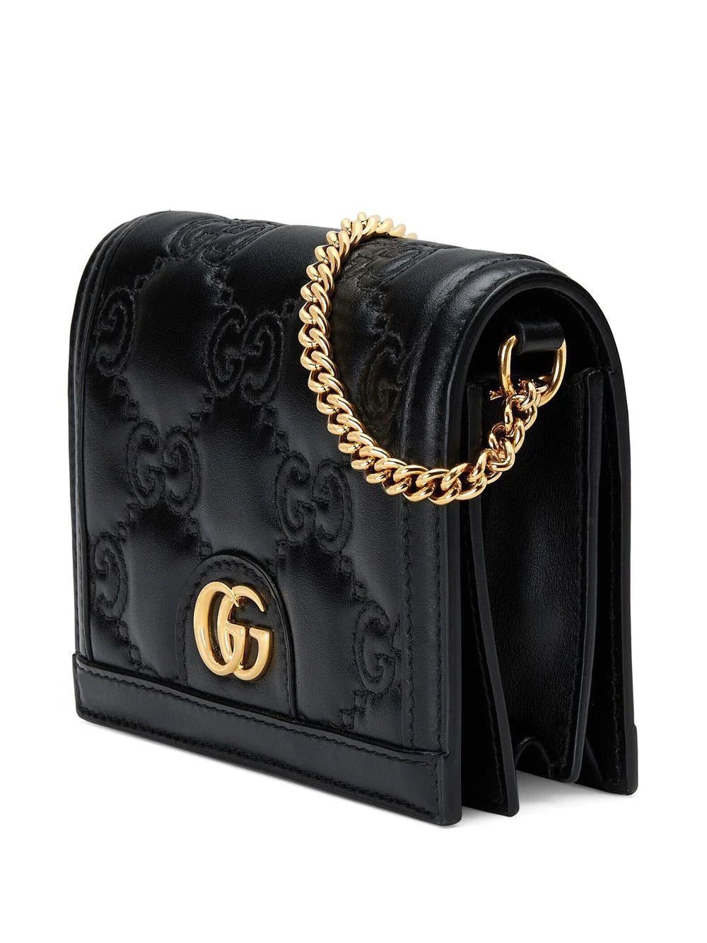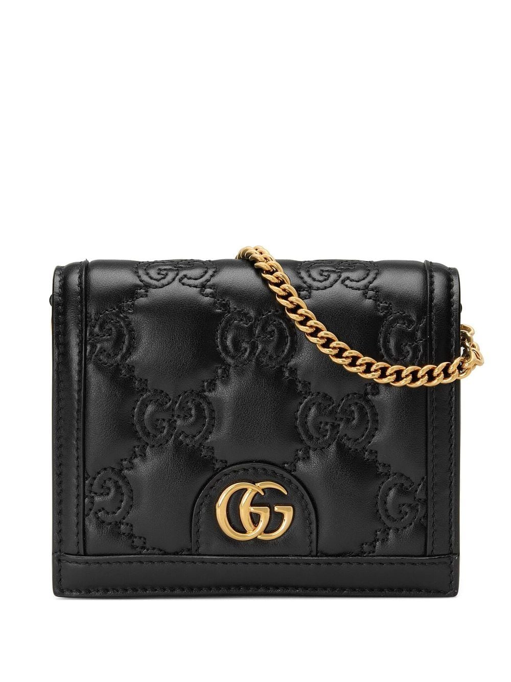Crafted in Italy from smooth leather, this black mini bag from Gucci boasts the house's GG Matelassé quilting throughout for added texture whilst a Double G plaque takes centre stage at the front. Its delicate chain-link strap allows it to be worn in multiple ways.