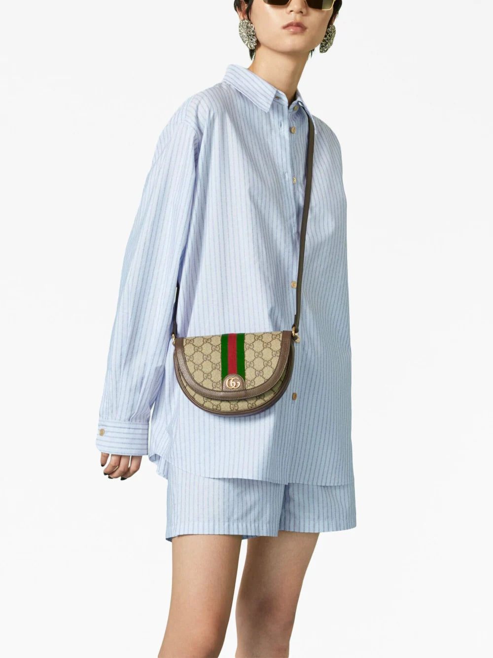 The world of Gucci’s Ophidia evolves with the introduction of a mini bag crafted in soft GG Supreme canvas. A contemporary take on a Gucci archival belt buckle from the '70s, the Double G is repurposed and appears in a gold tone to the front. This iteration of the classic style is completed with a detachable and adjustable strap for added functionality.