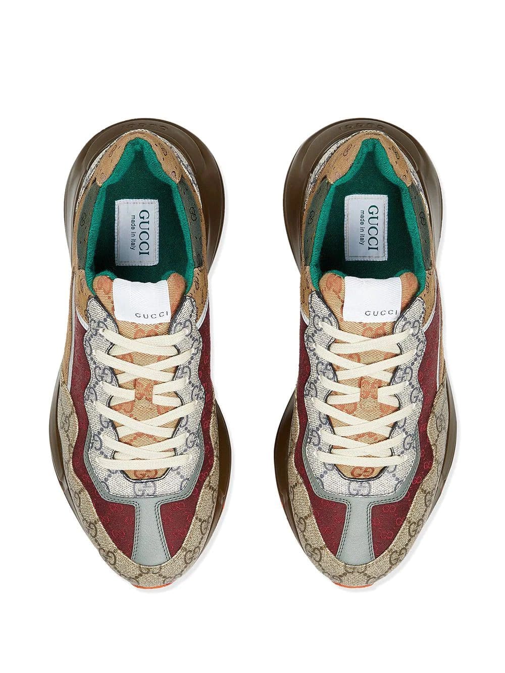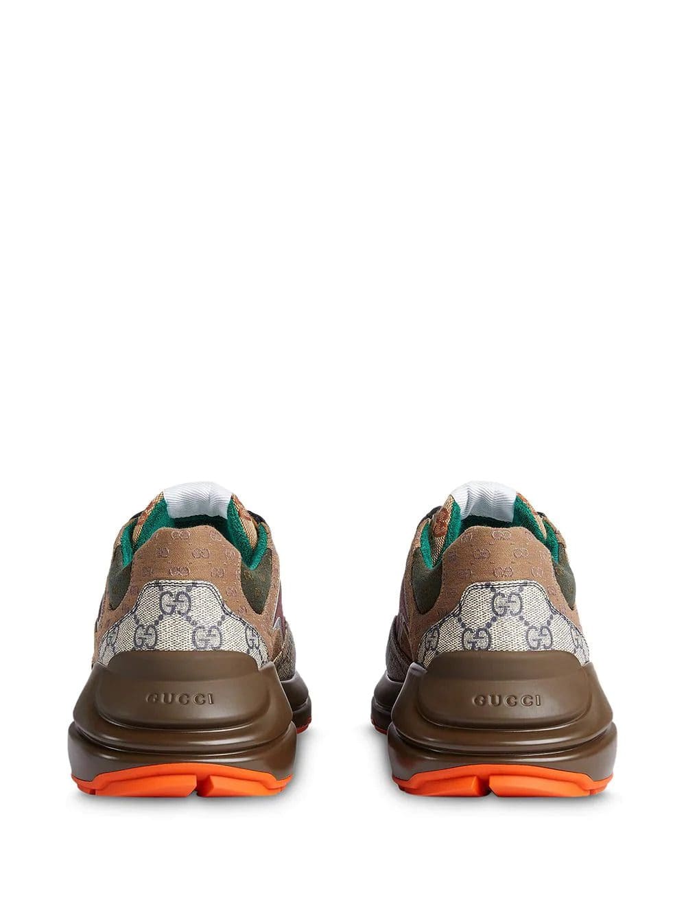 Looking to win in the style race? Let these monogram-pattern sneakers from Gucci carry you over the finish line. Go for gold! Featuring a monogram pattern, a logo patch at the tongue, a branded insole, an almond toe, a front lace up detail, a flatform sole and a reflective trim.