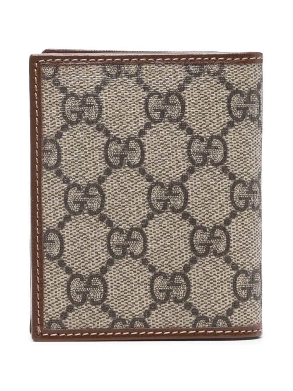 Gucci's archival fabrics and details unite to create a vintage appeal with this wallet. Presented in GG Supreme canvas and enriched by a tonal leather trim, the accessory is finished with a leather Interlocking G tag.