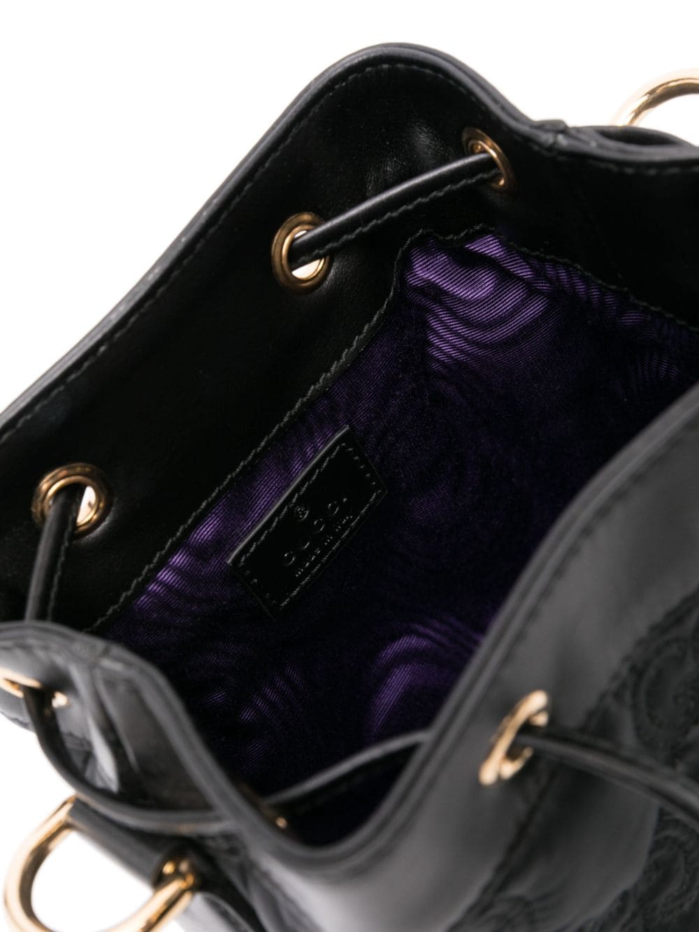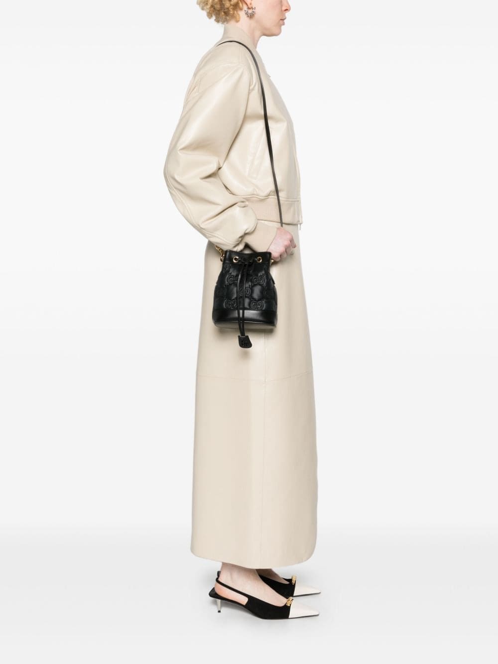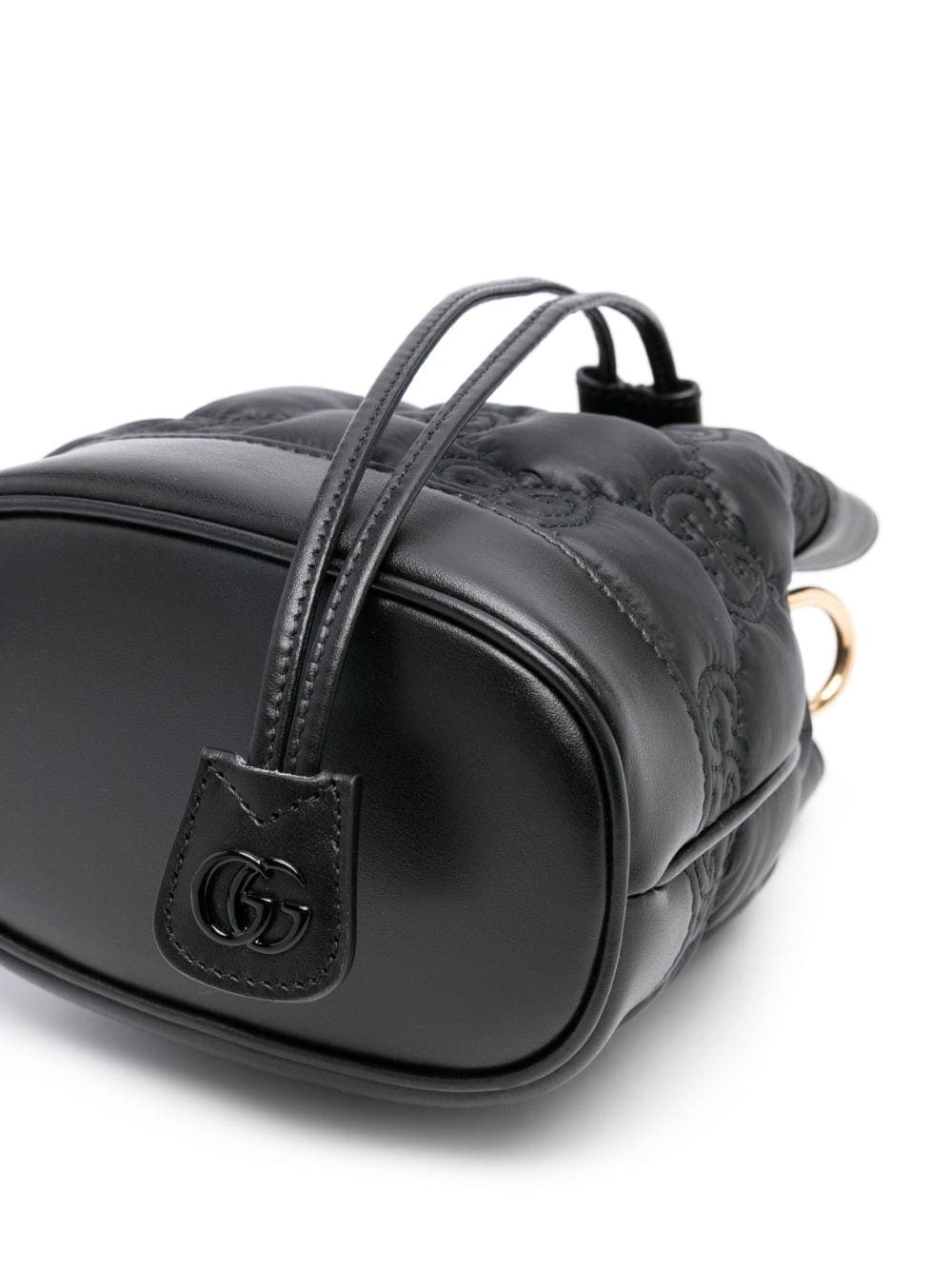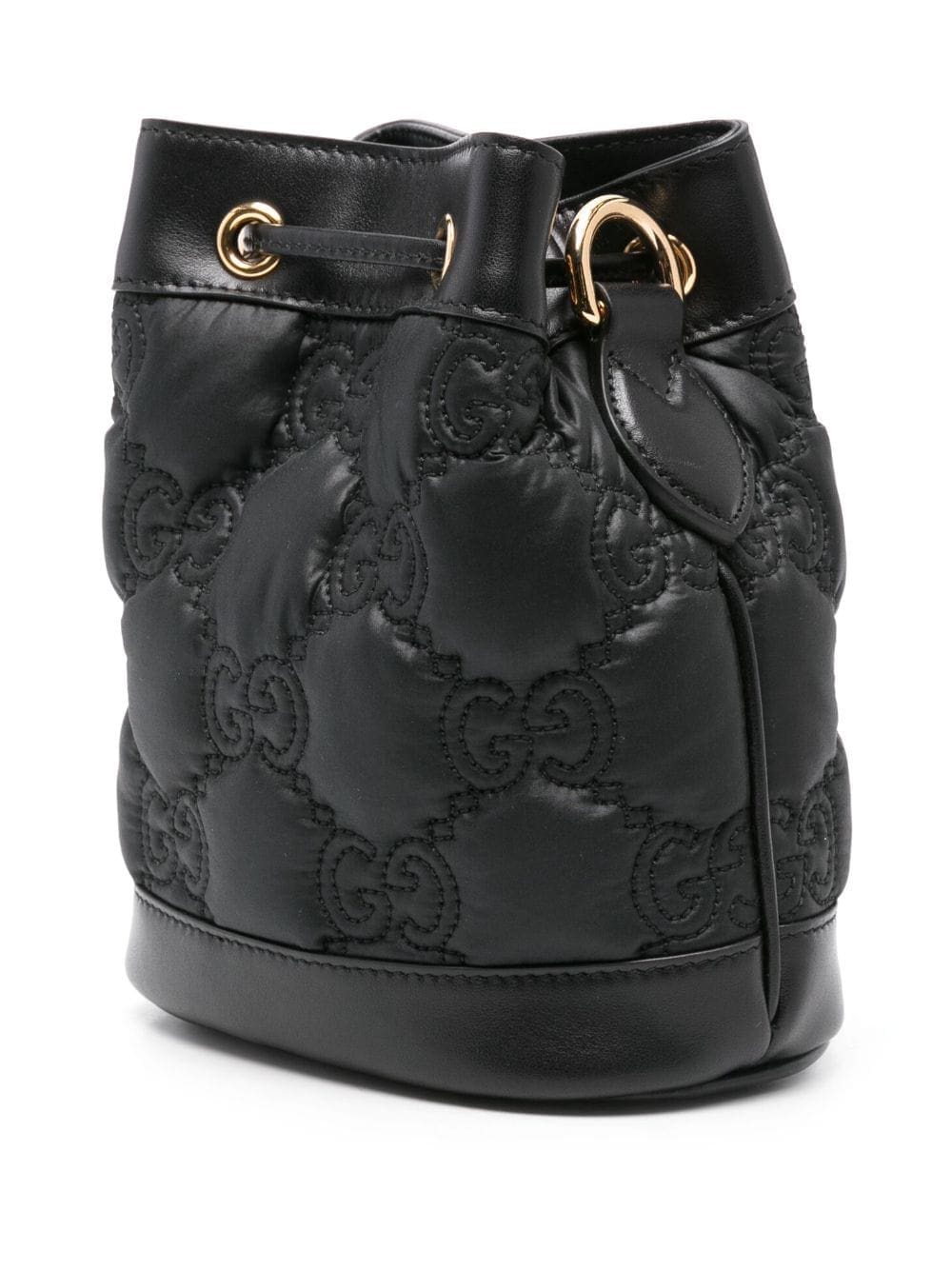 This bucket bag from Gucci is decorated with the brand's hallmark GG pattern in a matelassé effect. It's fitted with a detachable shoulder strap that's anchored by polished gold-tone hardware.