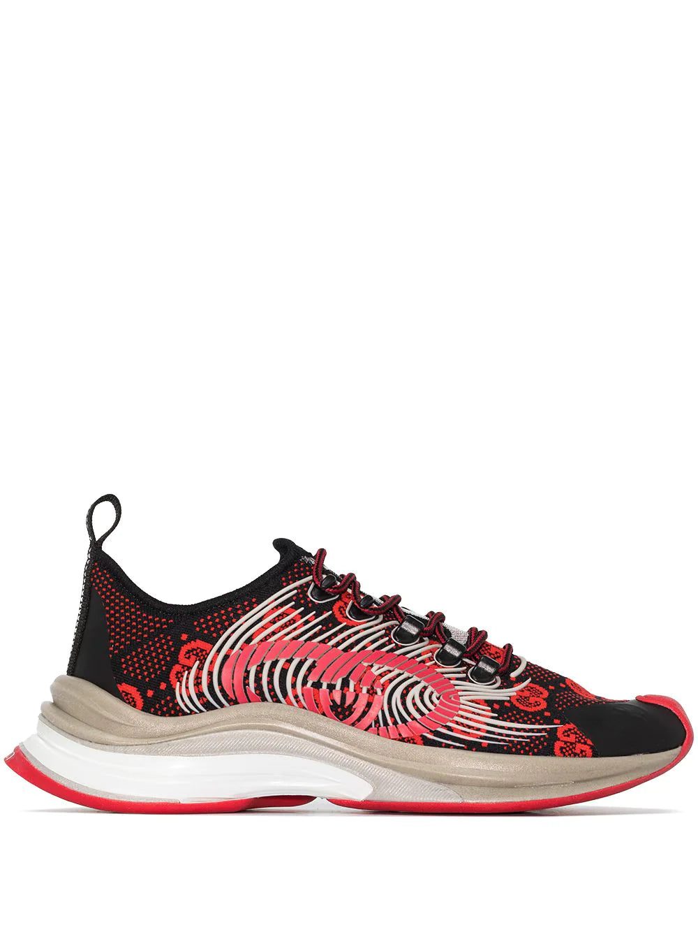 Gucci draws inspiration from the classic running shoe silhouette and includes the Gucci Run sneakers in its SS22 collection. Adorned with a statement Interlocking G motif at the side and a GG Supreme print at the upper, they benefit from a practical pull-tab at the heel and sit atop a two-tone rubber sole.