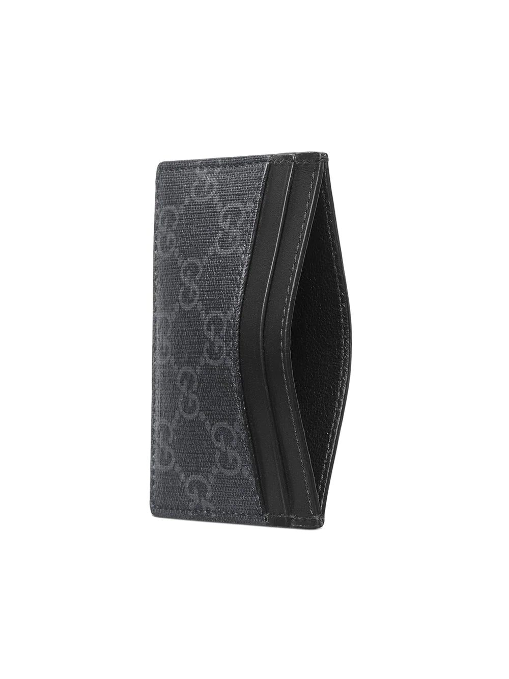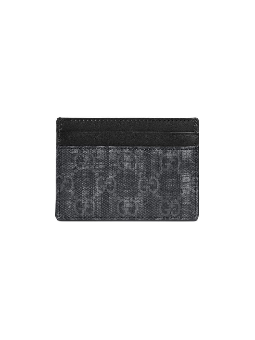 The Kingsnake, in vibrant colors, continues to emerge as one of the signature details of the House's eclectic narrative. Here, it is printed across a card case made in GG Supreme canvas, a material with low environmental impact. Black/grey GG Supreme canvas with Kingsnake print. Black leather trim. Black palladium-toned hardware. Five card slots. W10cm x H7cm. Made in Italy.