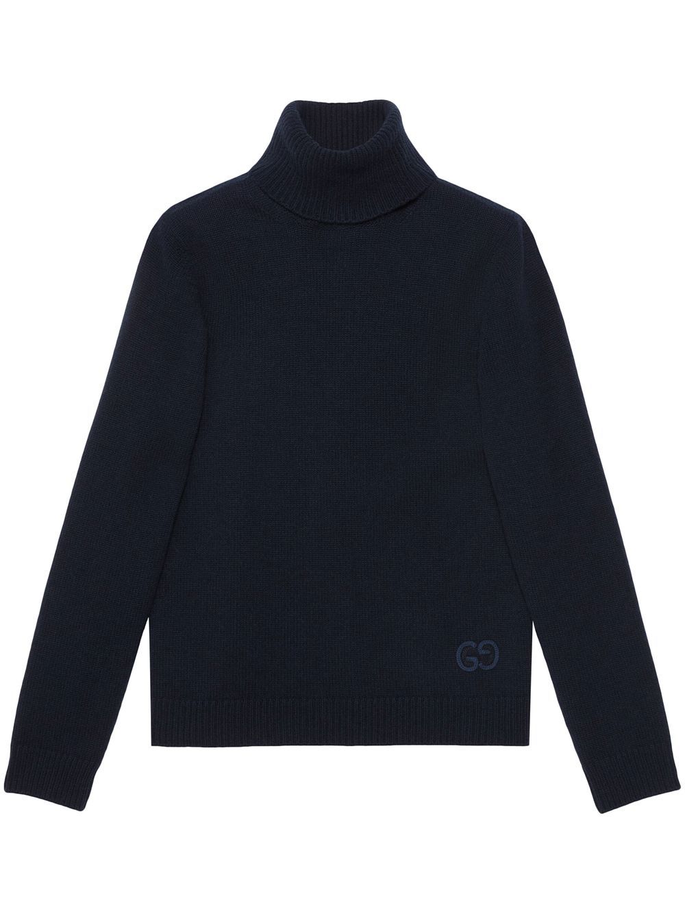 Gucci opts for a timeless design aesthetic when creating this cosy cashmere jumper. Presenting a refined navy blue hue in a comforting roll-neck silhouette, the brand's iconic GG motif is subtly worked into the intarsia design for a recognisable edge.