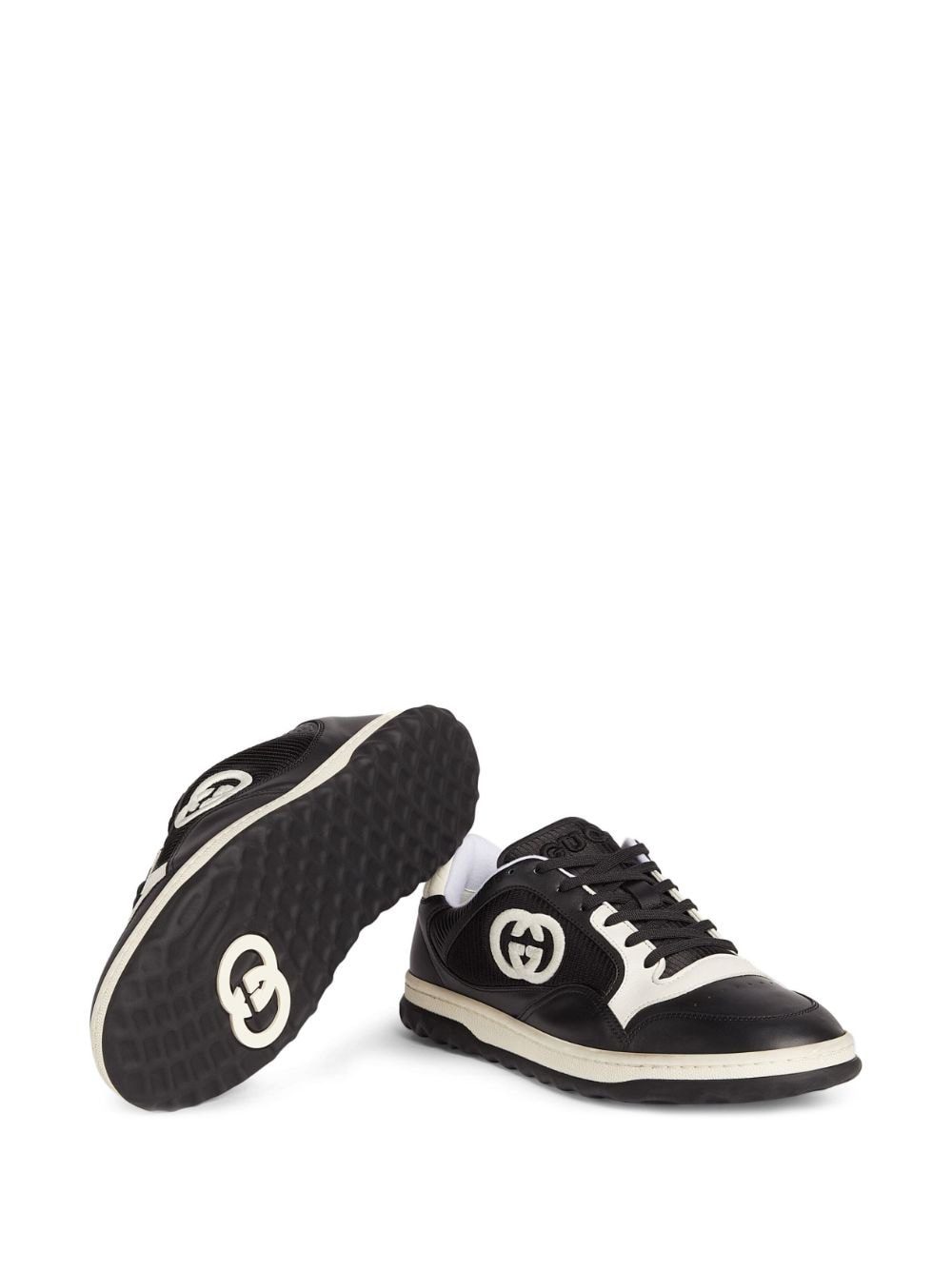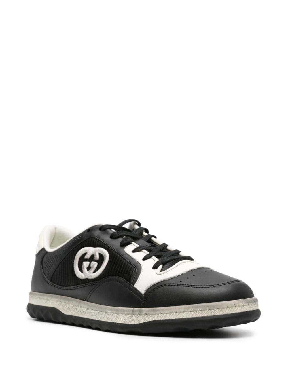 Gucci's signature Interlocking G takes the focus of these black and white sneakers. They're crafted to a retro-inspired low-top silhouette with logo embroidery at the tongue and a flat rubber sole.