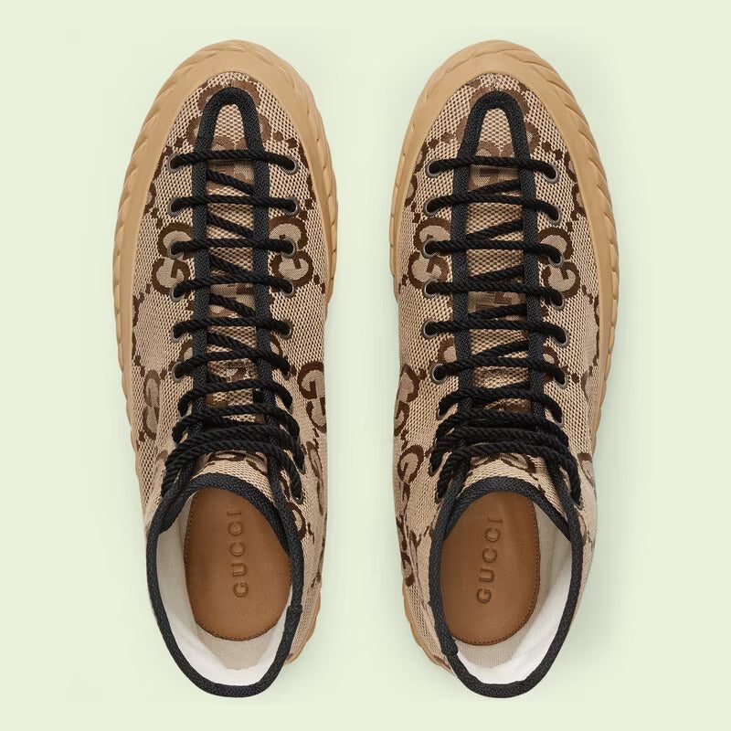 Paying tribute to both the past and present, this men's sneaker is presented in a mix of maxi GG canvas and the classic interpretation of the logo material. The high-top sneaker is completed by a ribbon trim — accentuating its slim shape.