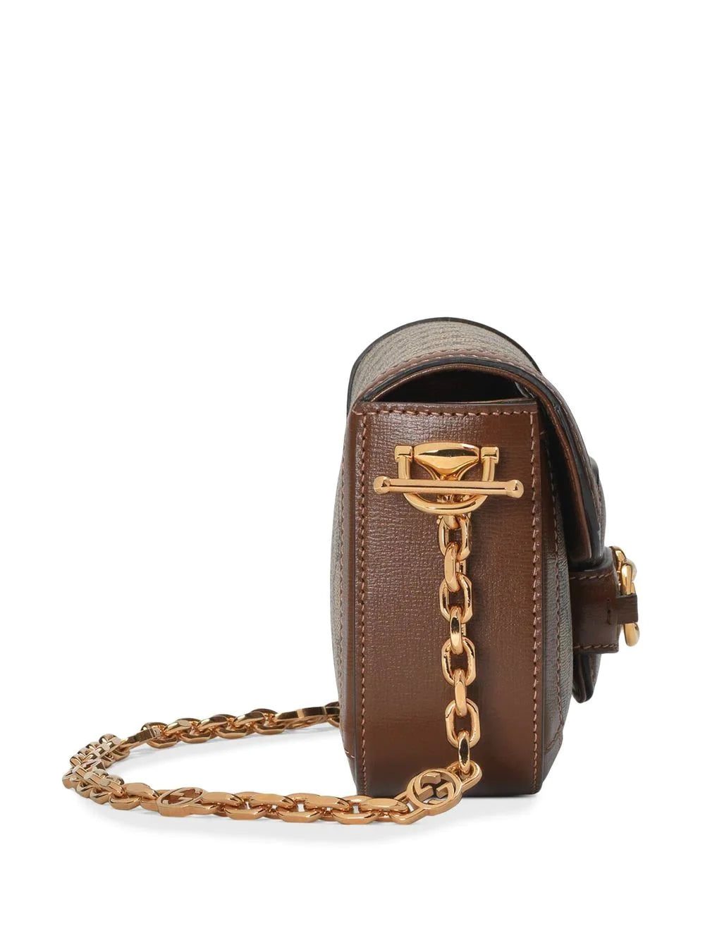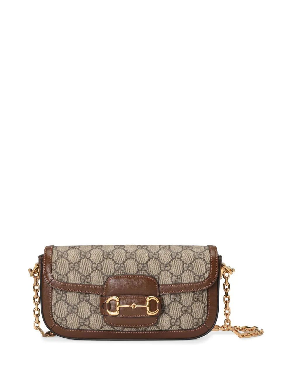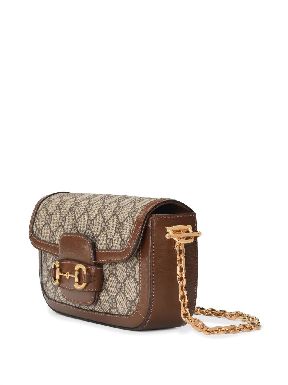 For SS23, Gucci merges iconic House codes to recreate an archival design that dates back to 1955. Presented in the classic beige GG monogram canvas, this mini iteration draws attention to the label's equestrian roots with the Horsebit detail that decorates the front flap.