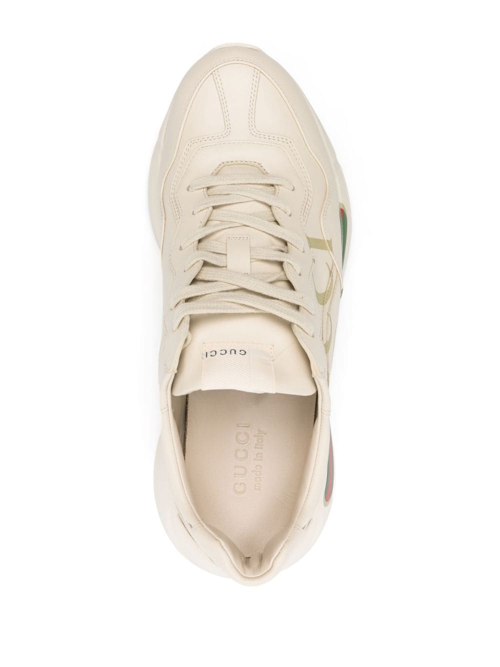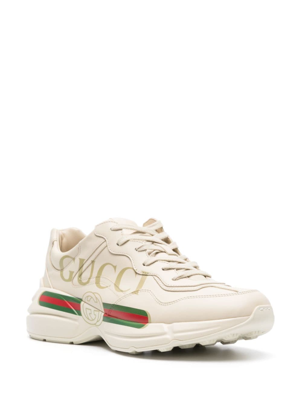 Cream/red/green Rhyton-logo leather sneakers from Gucci.