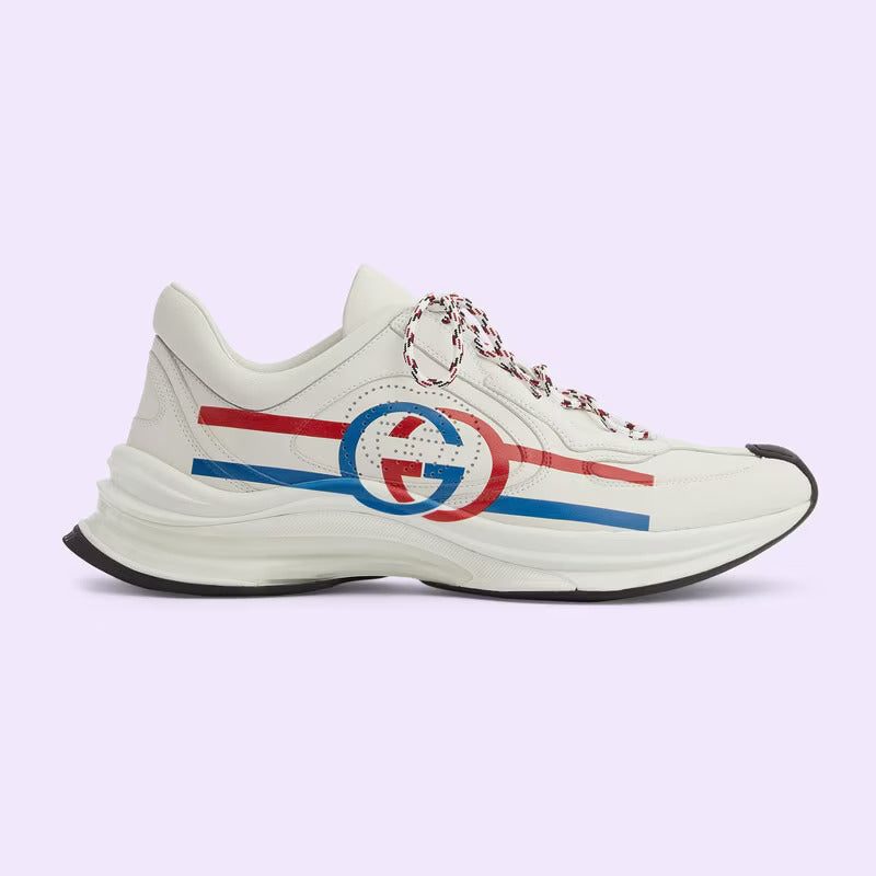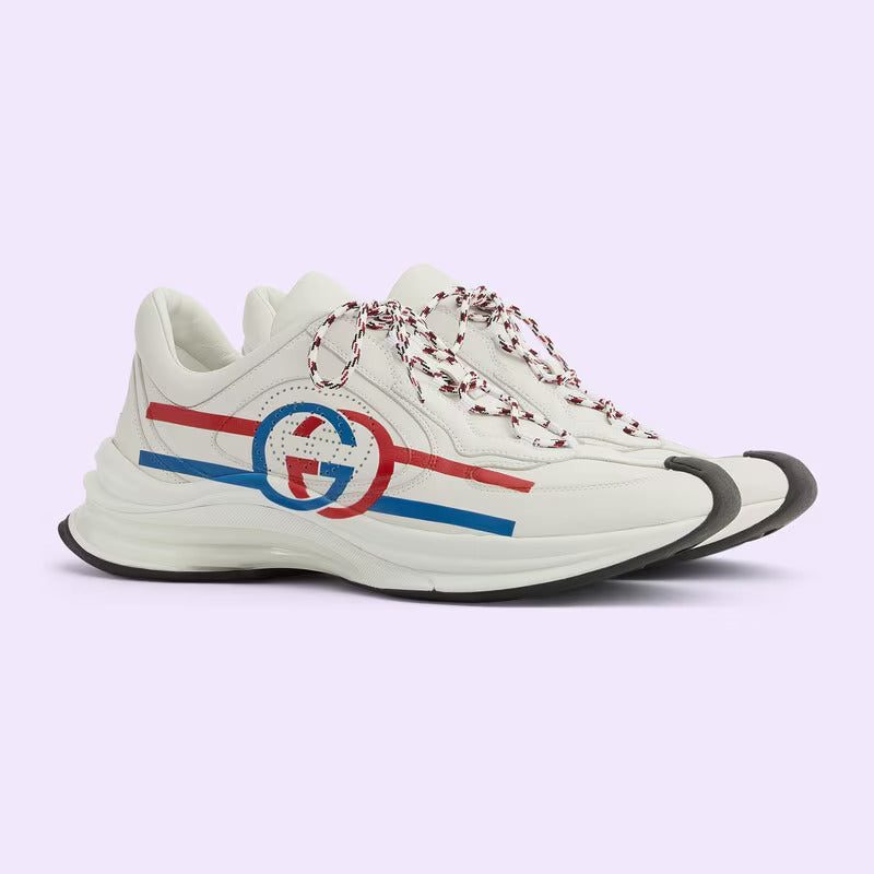 In today’s fast-paced lifestyle, Gucci Run is an invitation to step into a moment of pause, allowing the wearer's unique creativity to simmer uninterrupted and bubble up to the surface. Introduced for Cruise 2023 Gucci Cosmogonie, this iteration of the sneaker is presented in white leather with monogram details.