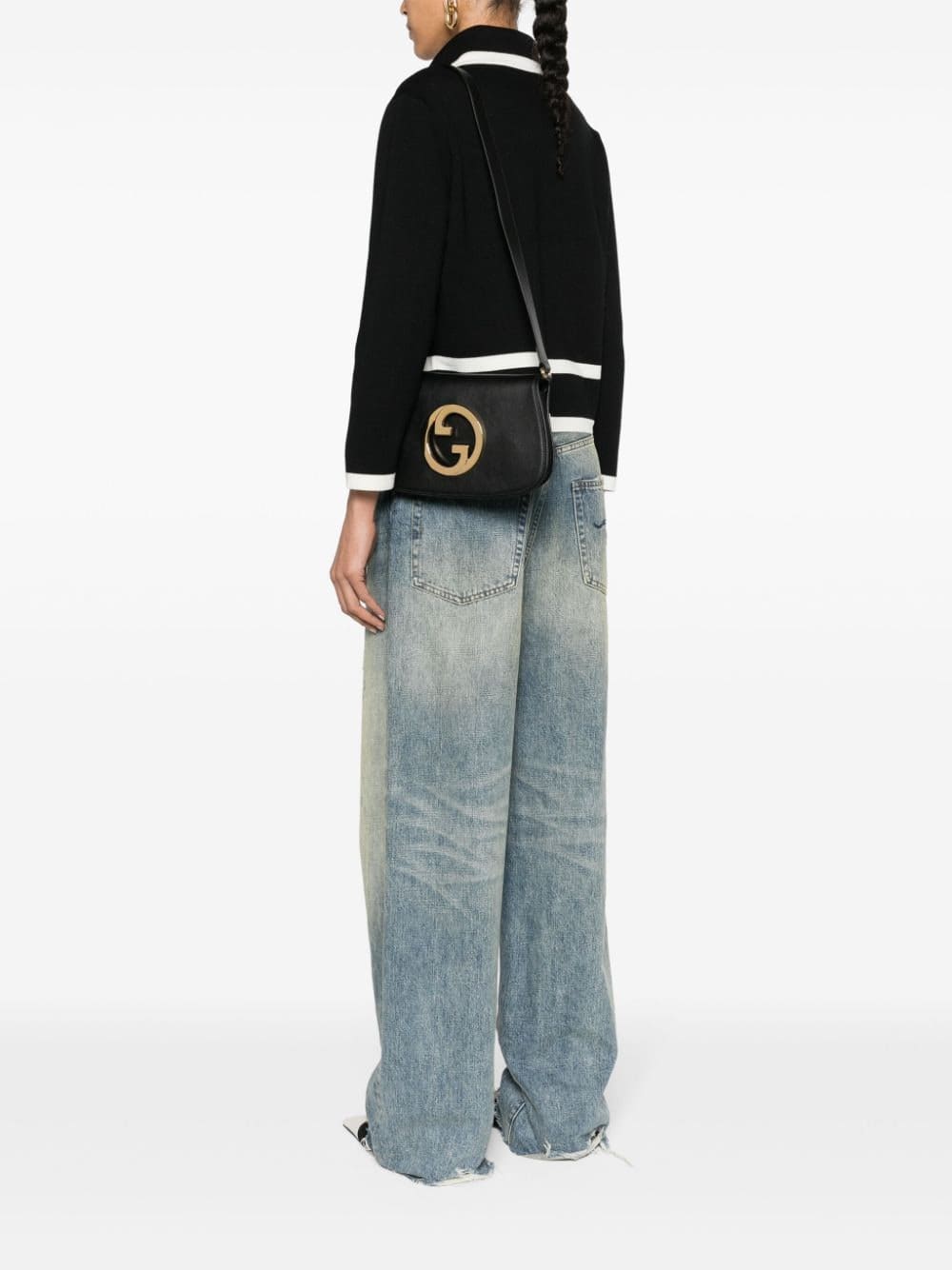 Gucci looks to the archives to inspire the Blondie shoulder bag. Presented here in sleek black leather, it is simply detailed with an Interlocking-G logo for an opulent finish.