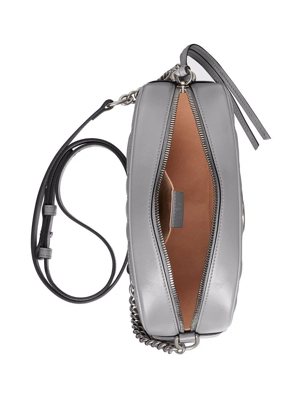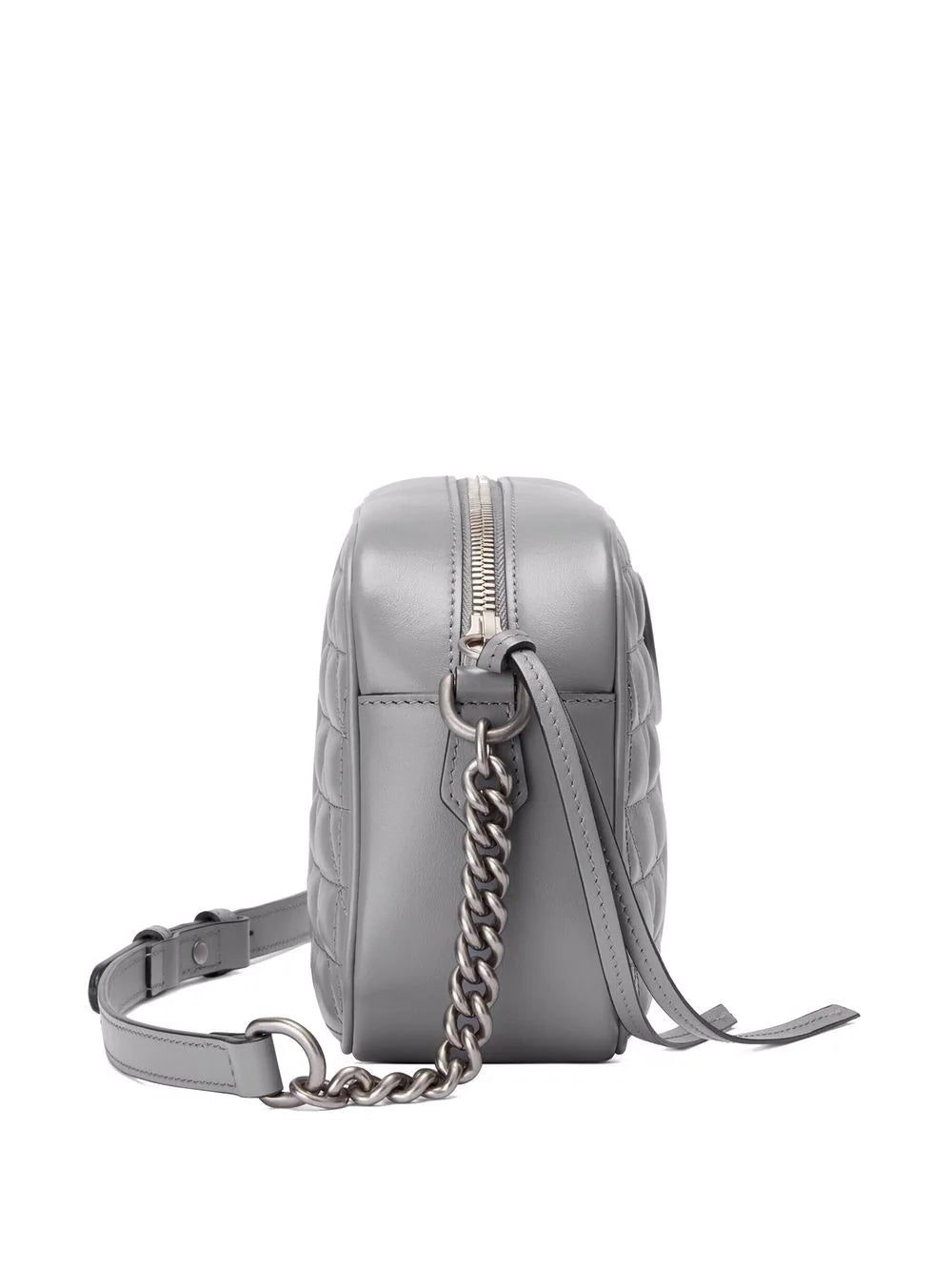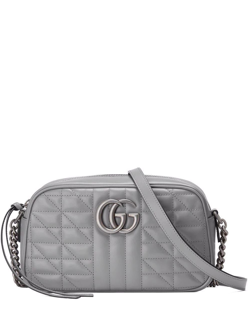 Gucci's small GG Marmont shoulder bag is defined by its signature matelassé effect and Double G harware. For AW21, the iconic accessory is realised in grey leather with silver-tone hardware.