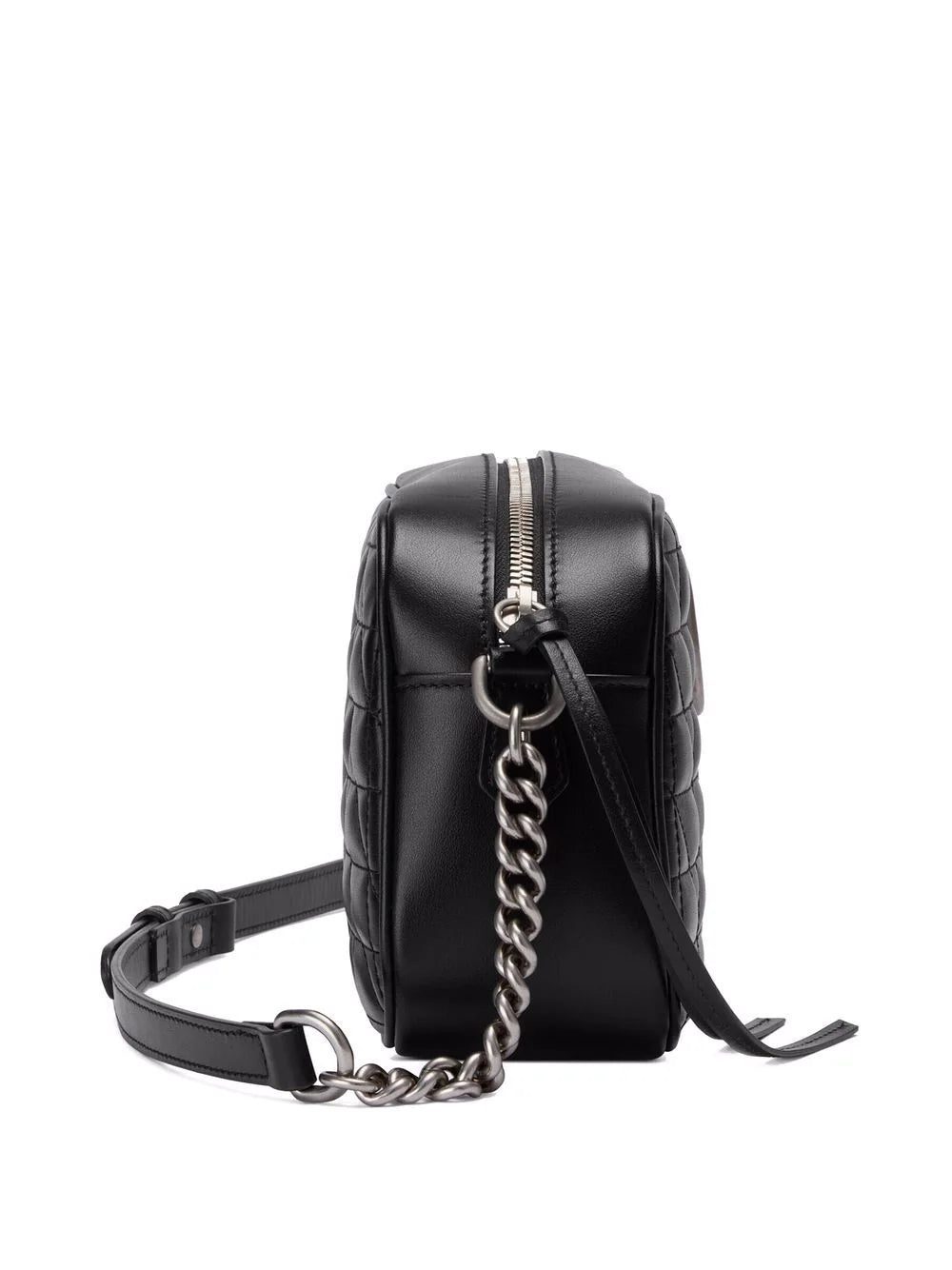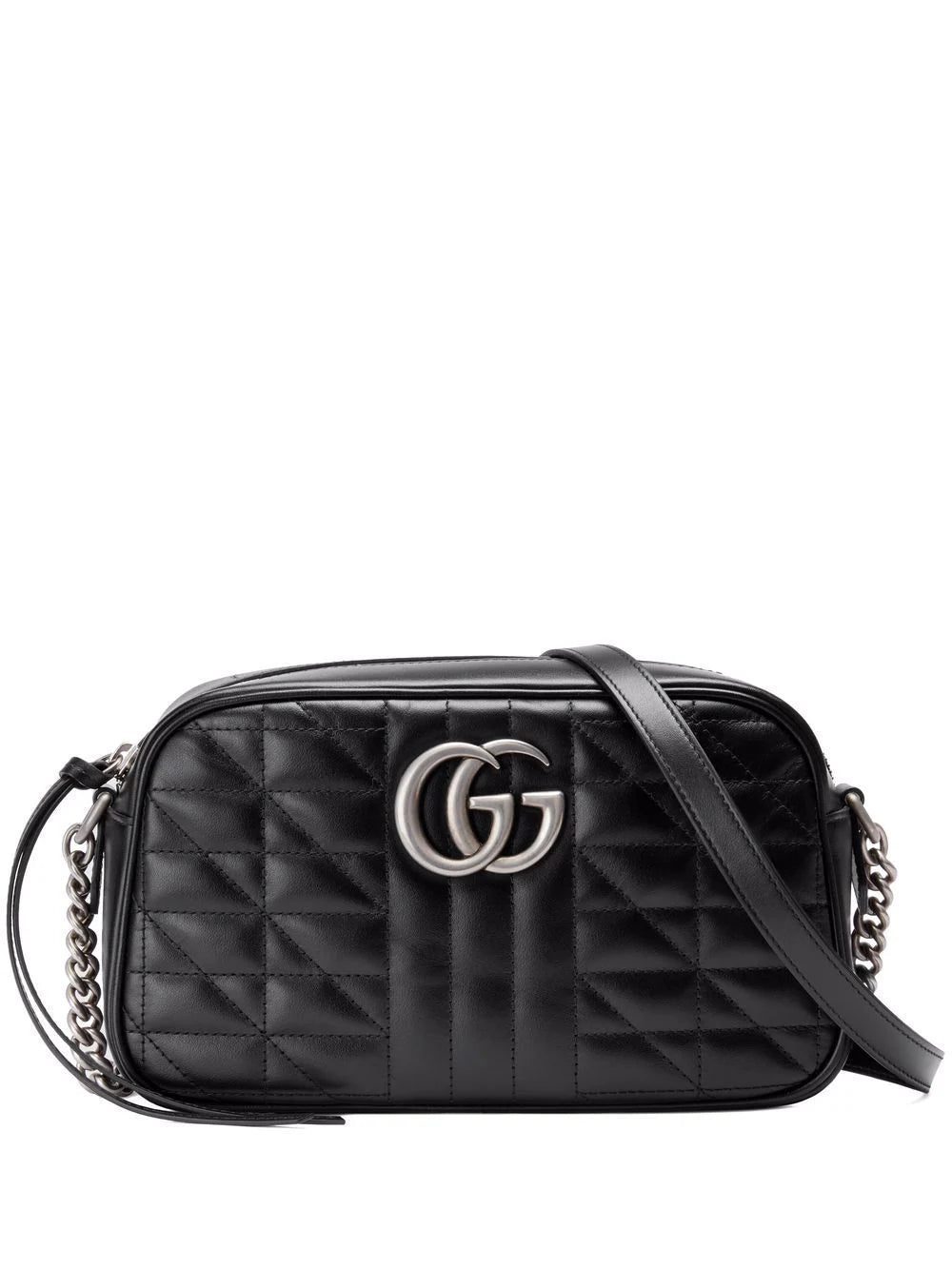 Gucci's small GG Marmont shoulder bag is defined by its signature matelassé effect and Double G harware. For AW21, the iconic accessory is realised in black leather with silver-tone hardware.