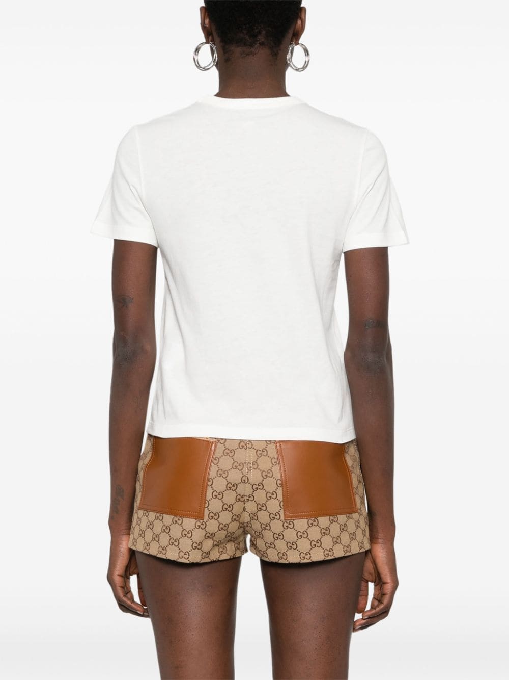 Gucci's monikers run the gamut of designs – the crystal-embellished Square G at the chest of this white T-shirt hails from the ‘90s in-line with the era’s latest sartorial revival.