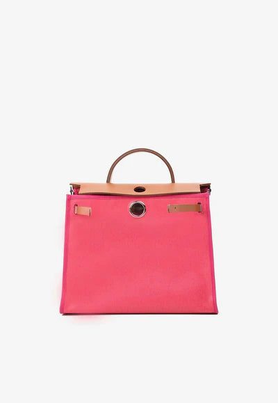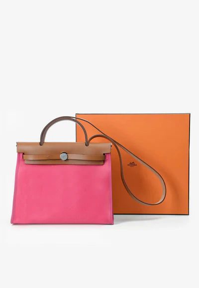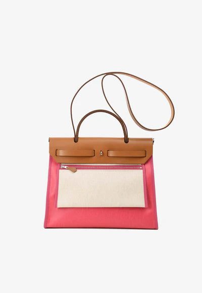 Hermès Herbag 31 in Pink Toile Militaire and Gold Vache Hunter Leather bag