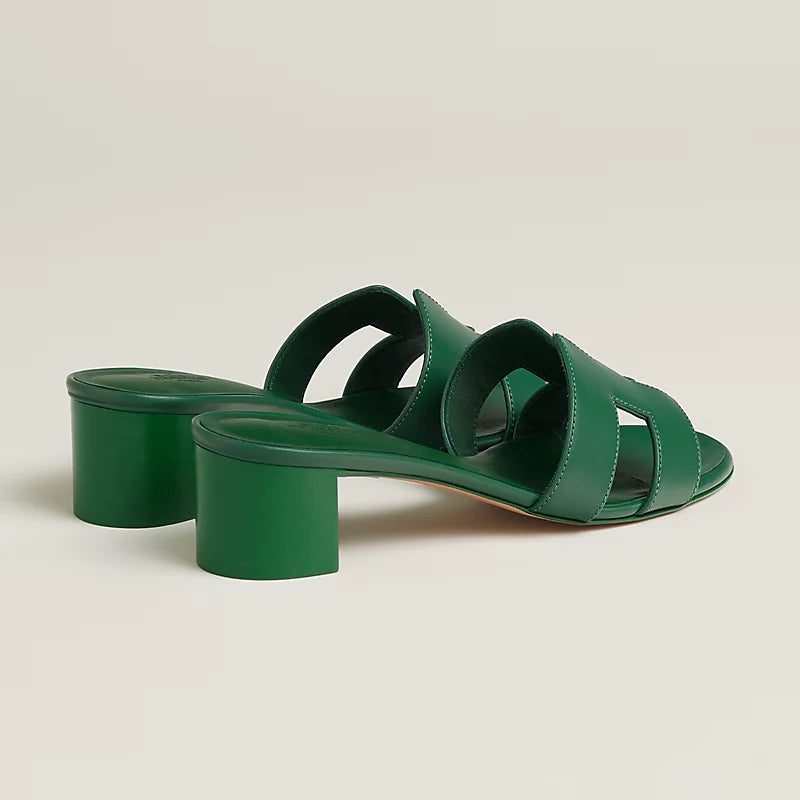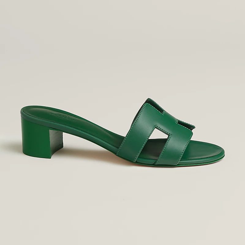 - Electric green leather heel