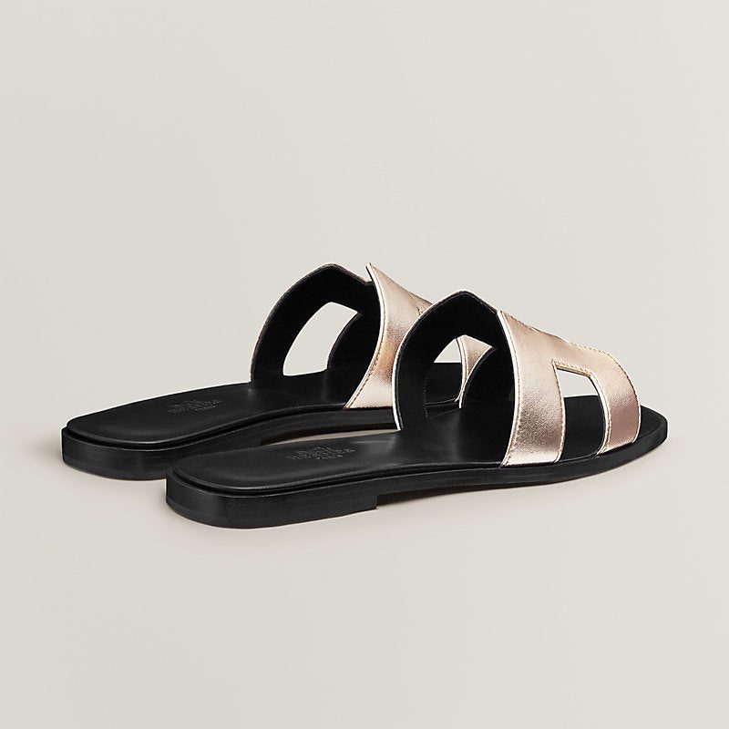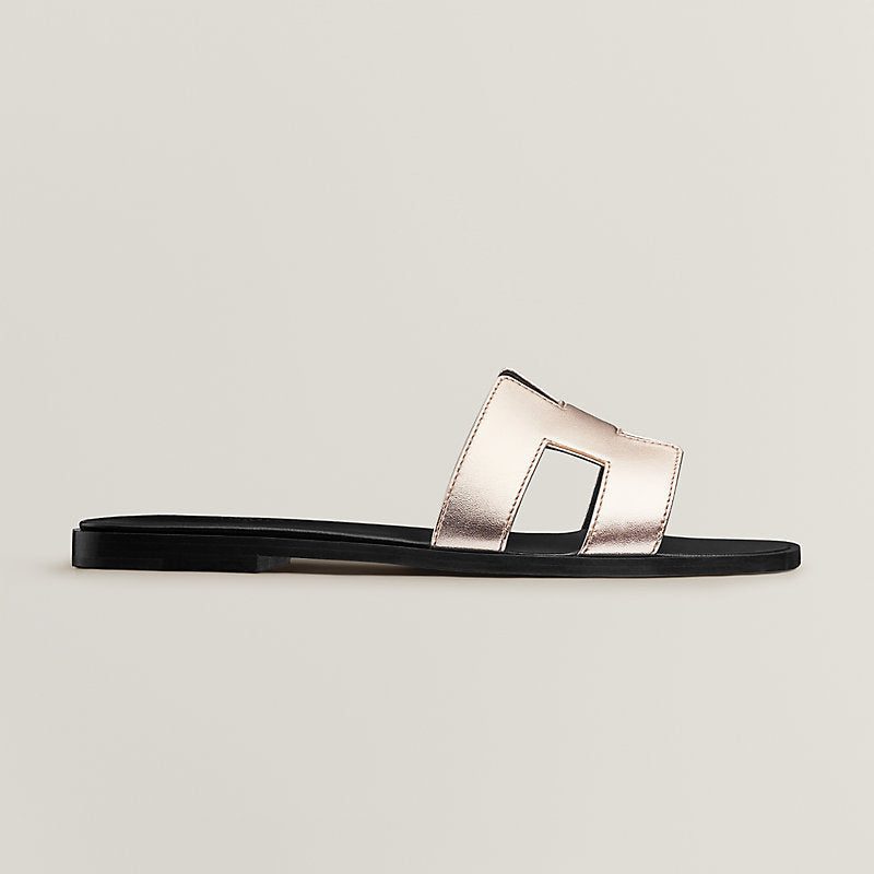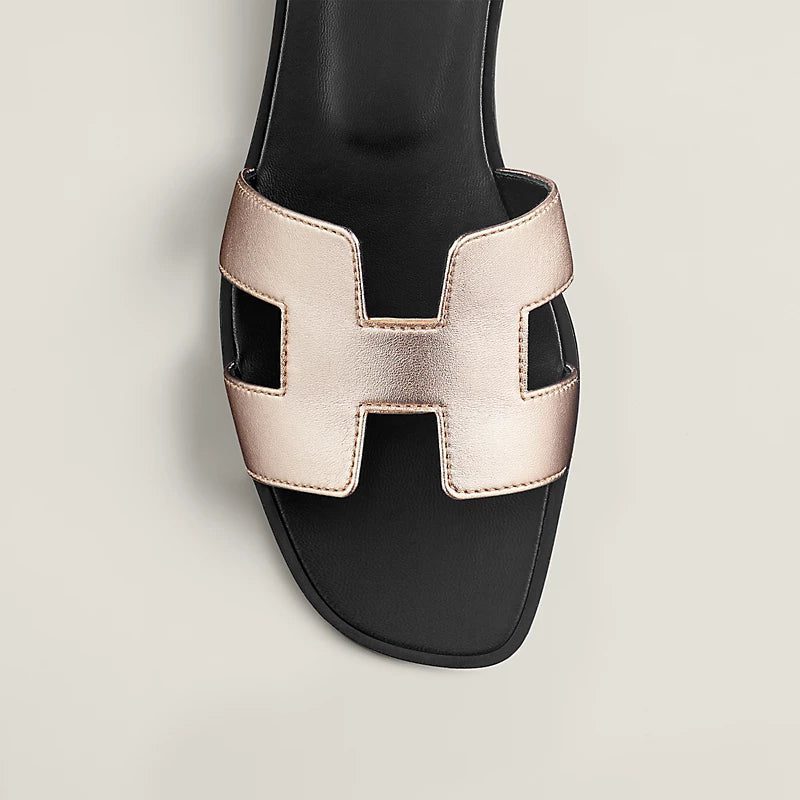 Sandal in Nappa leather with metallic finish and iconic "H" cut-out.
